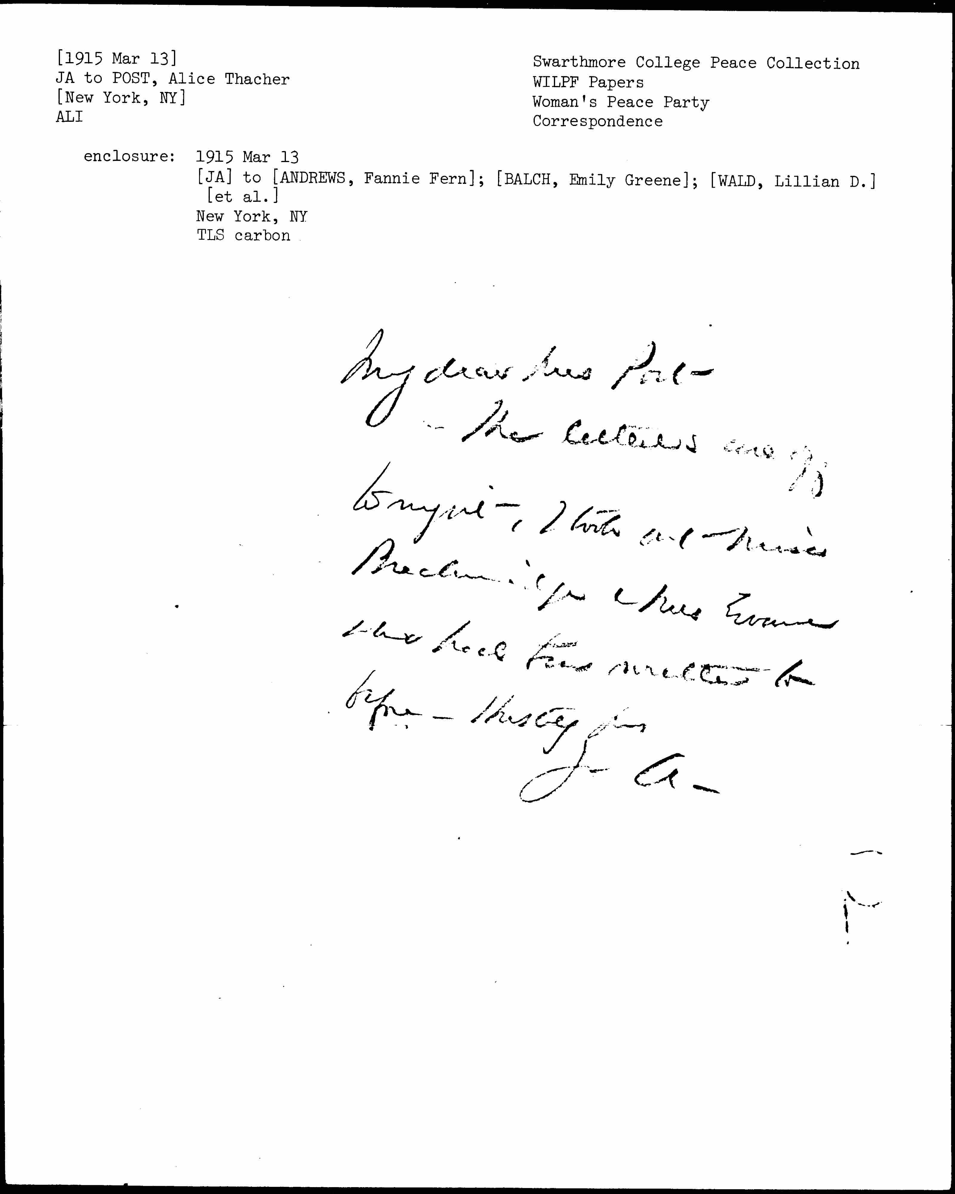 The letters are off tonight, I took out Miss Breckinridge & Mrs Evans who had been written to before. Hastily yours