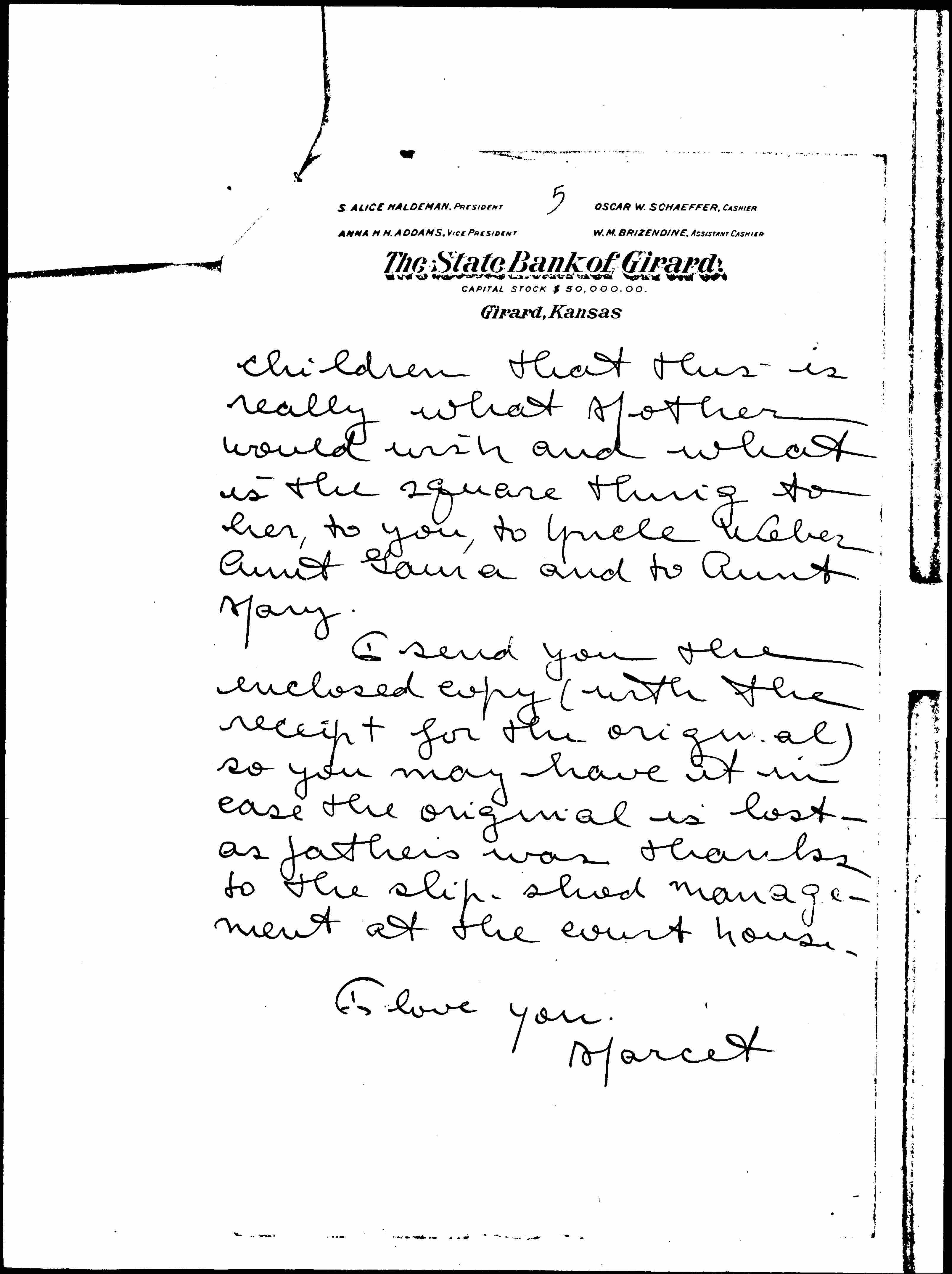 I send you the enclosed copy (with the receipt for the original) so you may have it in case the original is lost -- as father's was thanks to the slip-shod management at the court house.