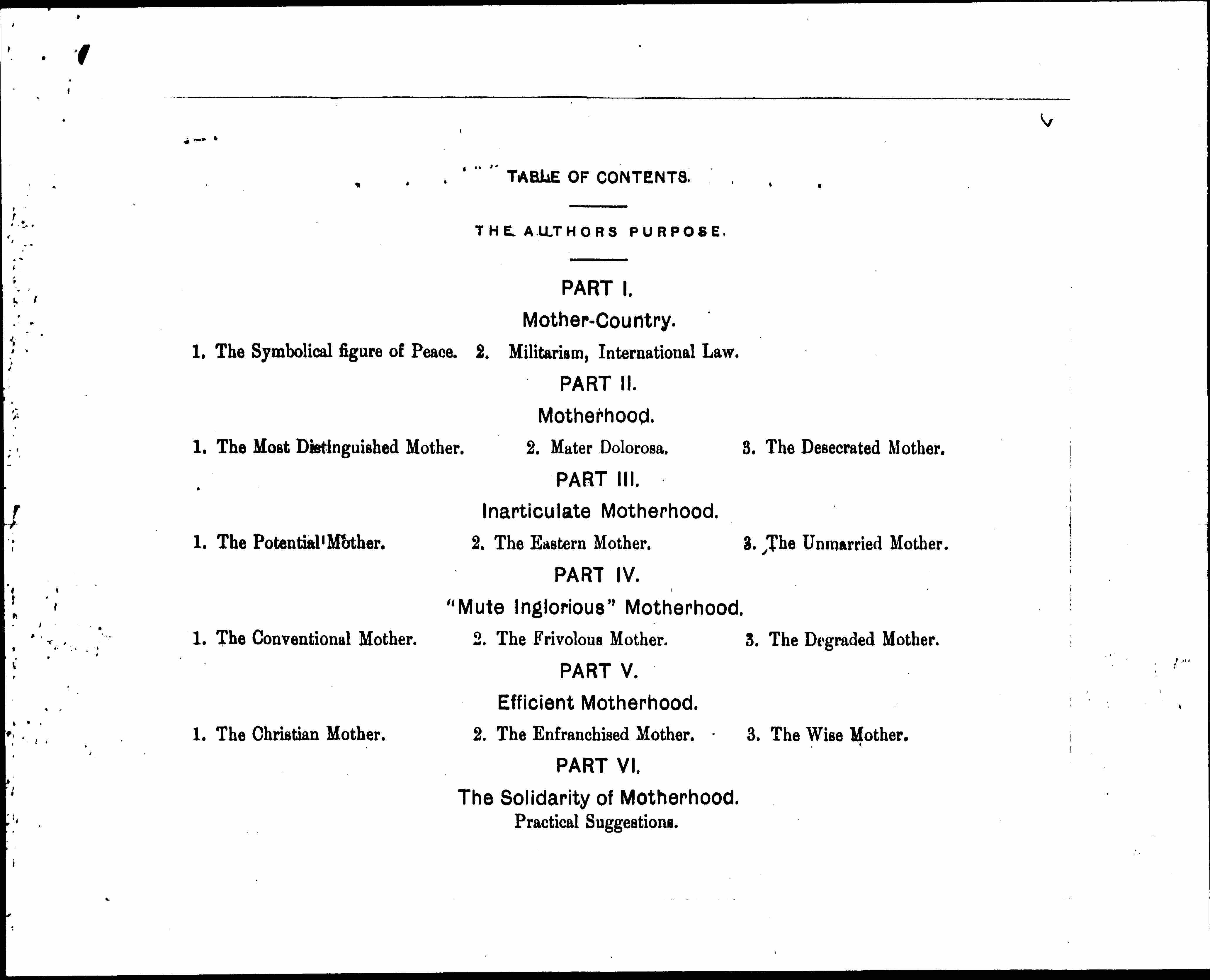 1. The Christian Mother. 2. The Enfranchised Mother. 3. The Wise Mother.