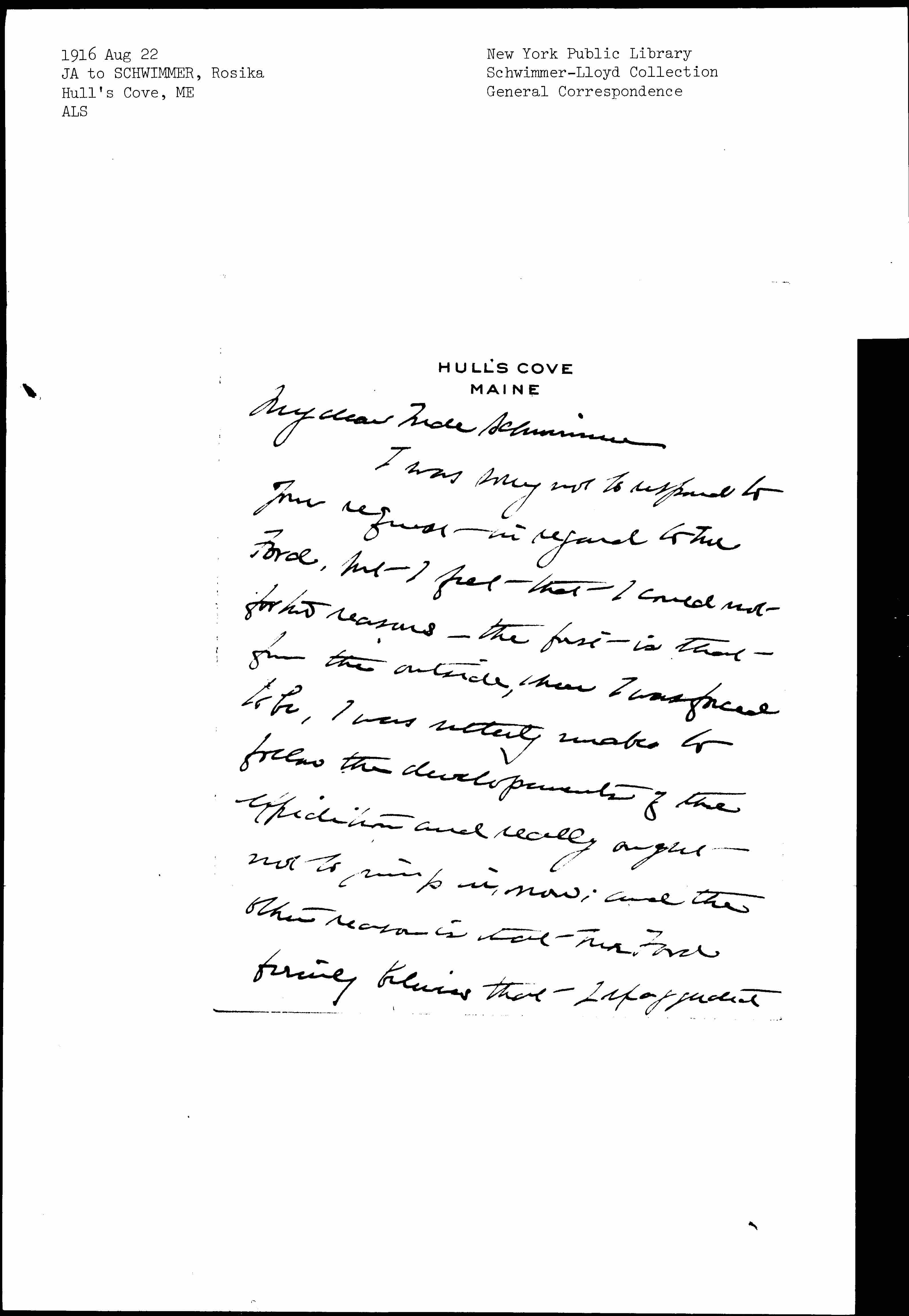 I do hope that the heat hasn't been unendurable in New York and that your plans are developing.
