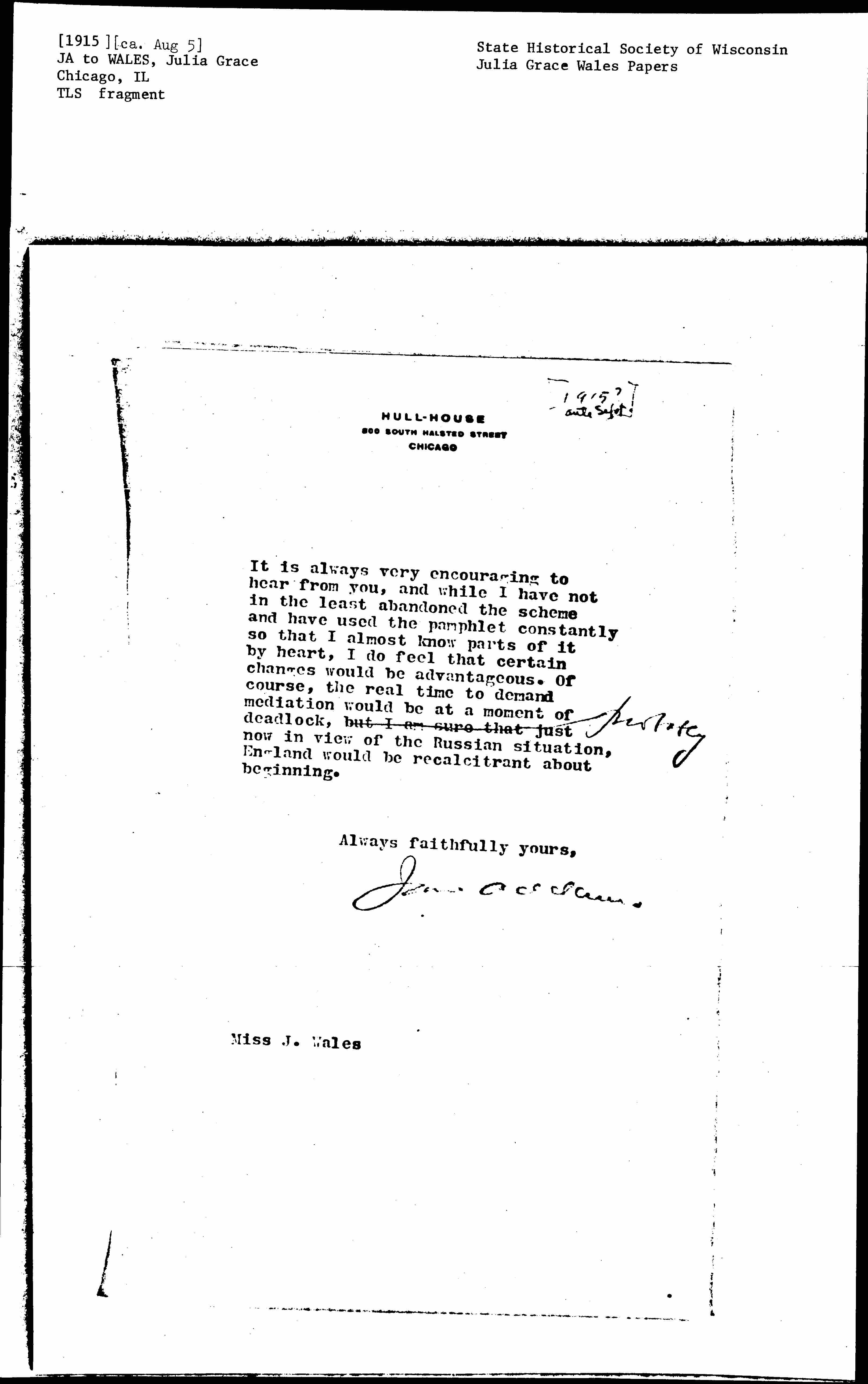 Jane Addams [signed]