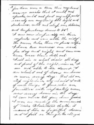 I have not walked a block since last January and my bills have been many and the expense is very great. I had saved a five-hundred dollars but that cannot last long. I have figured it out a great many times how much cheaper it would be to die and be buried. I know that I am a little better now than I was when brought here. Three good physicians gave up my case and said they could do no more for me as medicine had completely lost its effect. They suggested my coming here to this sanitarium and trying a more natural method of cure by means of hydrotherapy, massage and electricity in different ways. So here I am better as I said [page 3] for there was a time that my heart was so weak that I could not speak, could not feed myself, could scarcely see anything but light and darkness, could not sleep, was delirious, and temperature down to 96°.