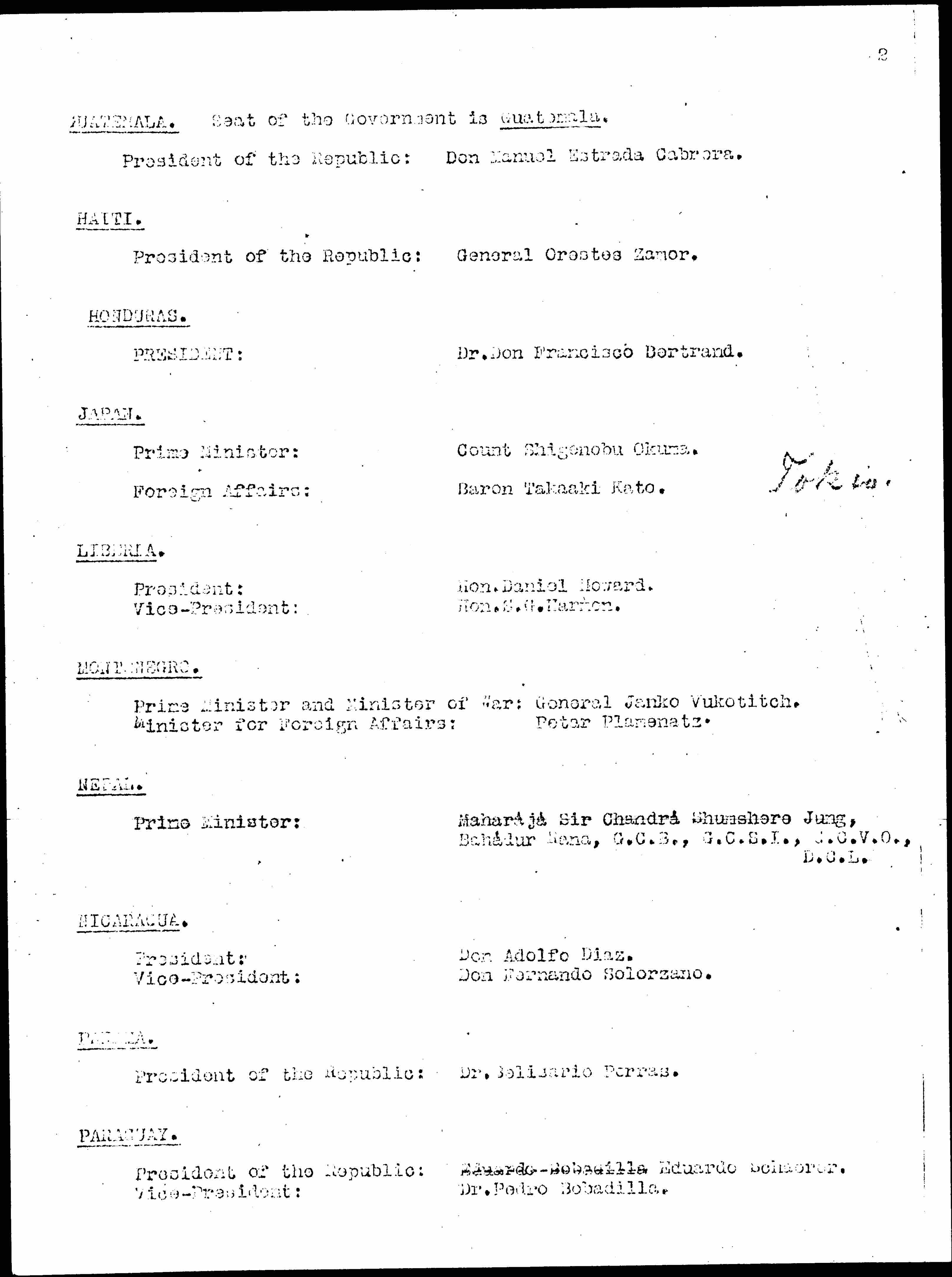 Prime Minister: [Mahārāja] Sir [Chandra Shumsher Jang, Bahadur] Rana, G.C.B.., G.C.S.I.,