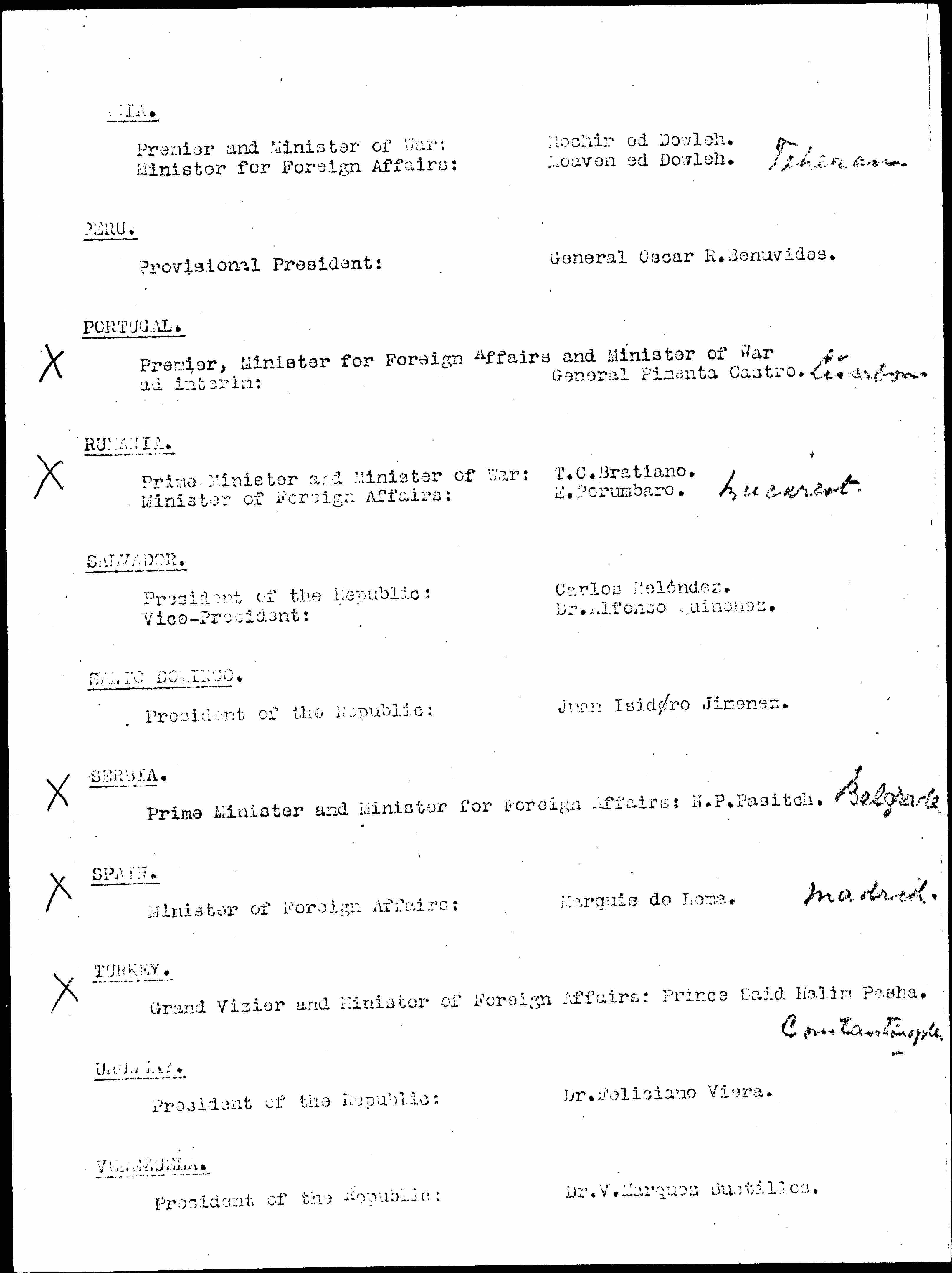 Prime Minister and Minister for Foreign Affairs: N. P. [Pašić]. <Belgrade>