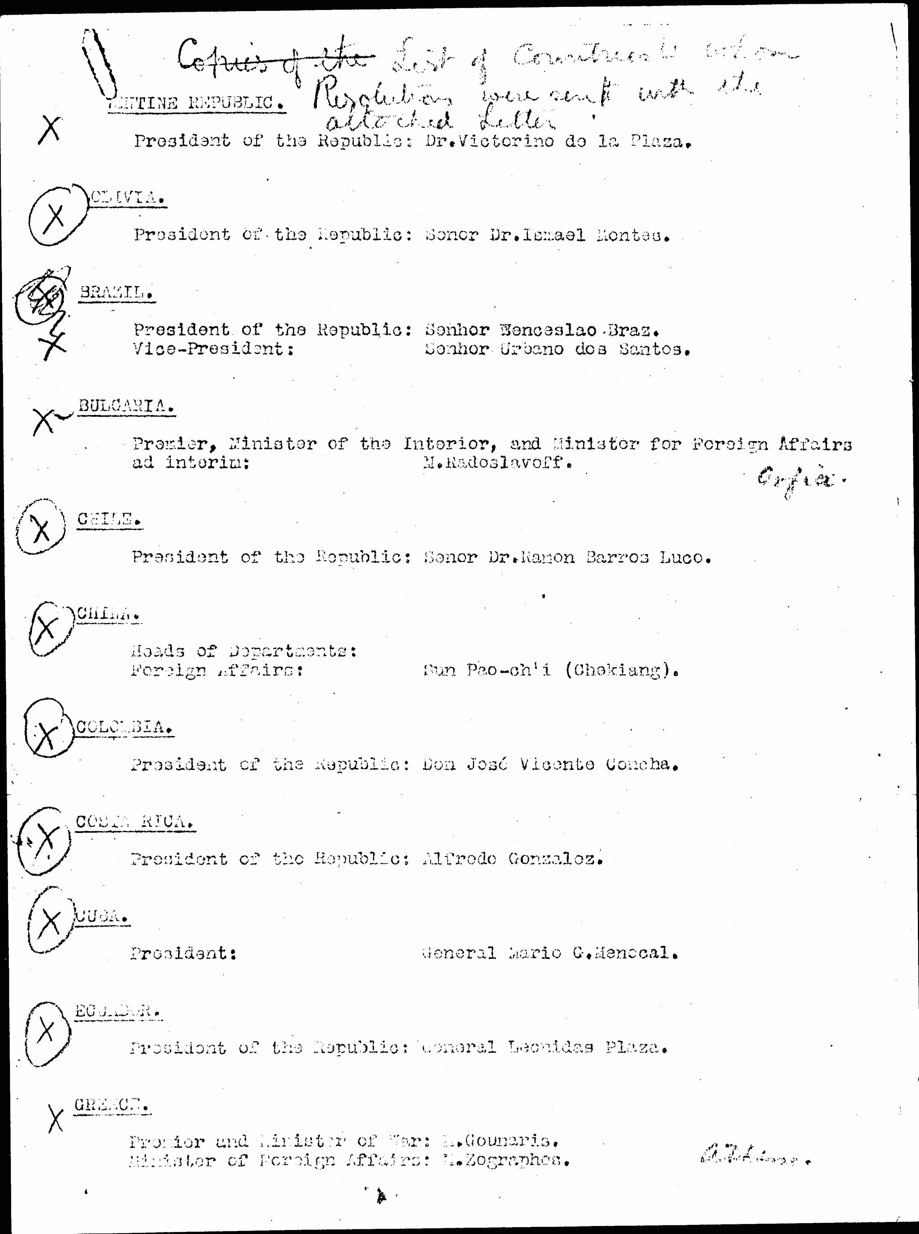 Minister of Foreign Affairs: Marquis de [Lema]. <Madrid.>