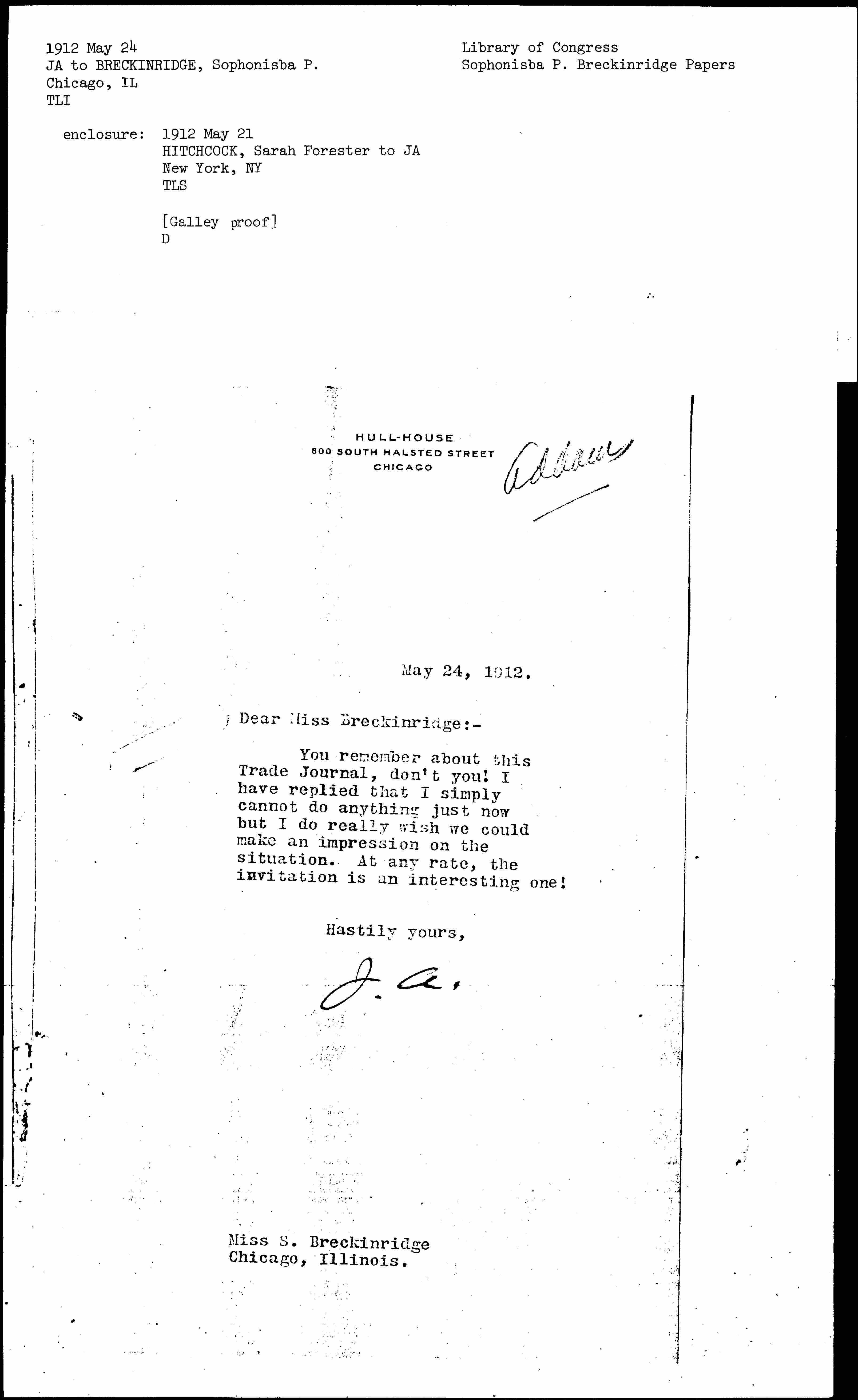 Dear Miss Breckinridge: --