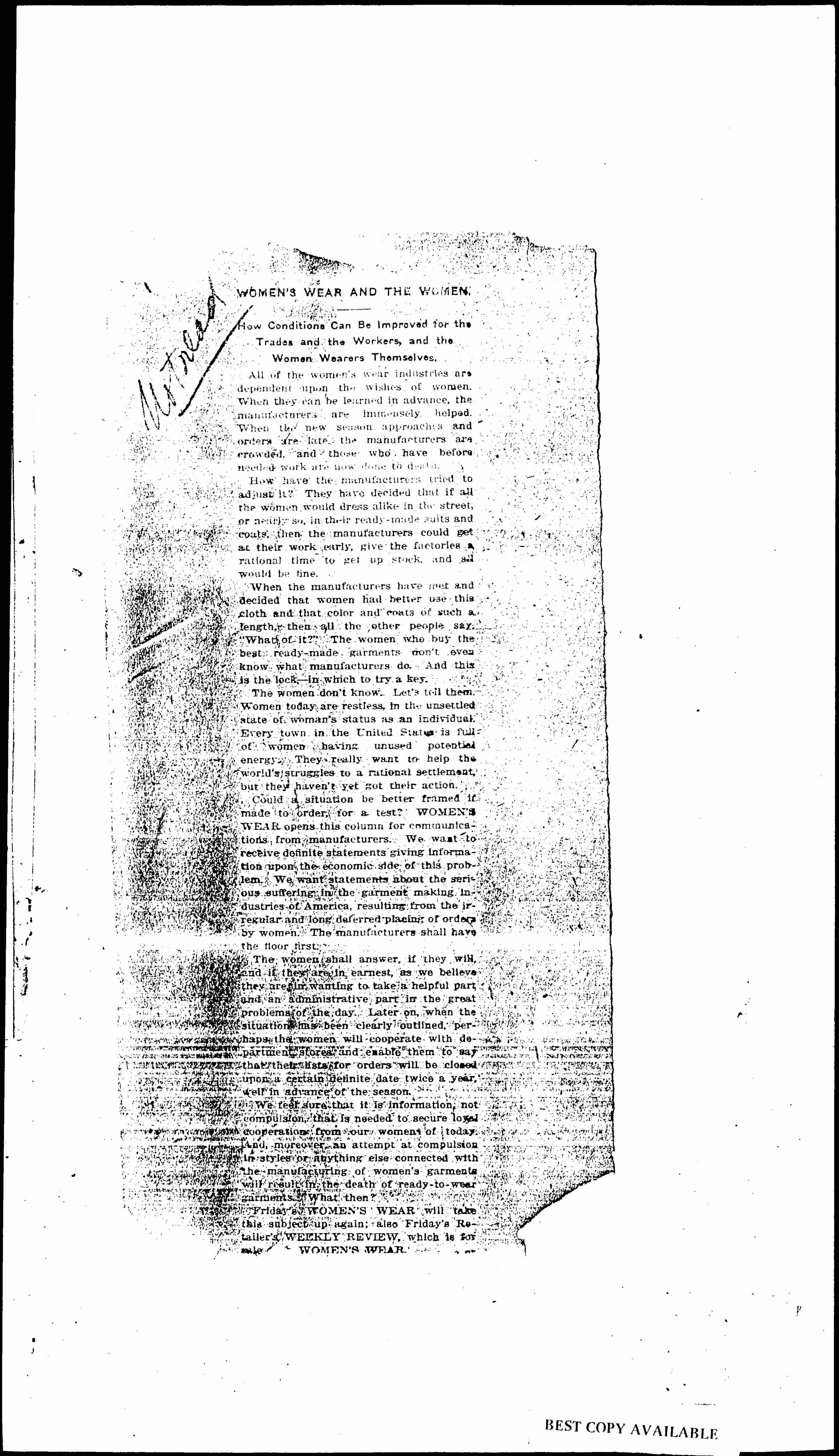 Friday's WOMEN'S WEAR will take this subject up again; also Friday's Retailer's WEEKLY REVIEW, which is for sale.
