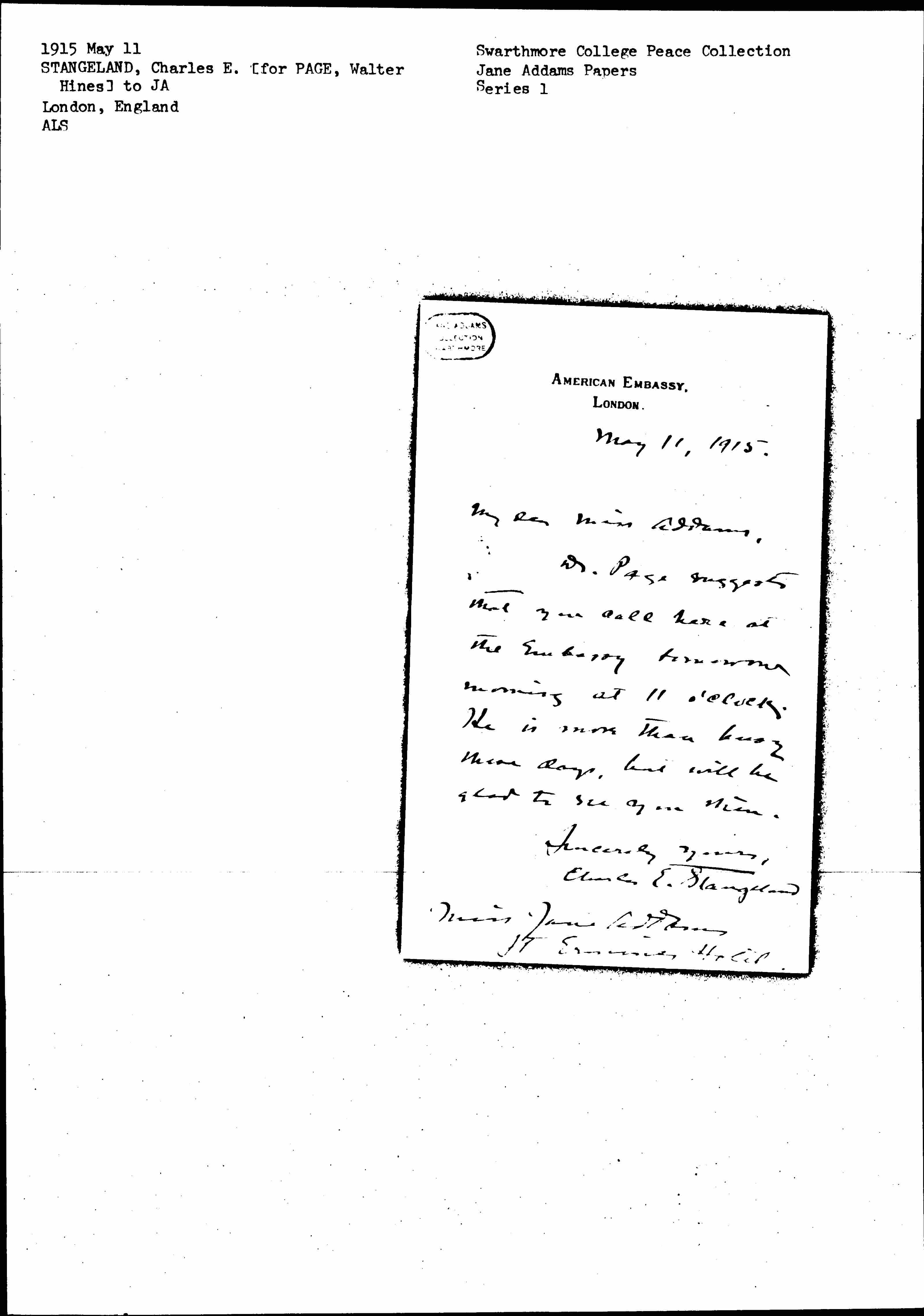 Dr. Page suggests that you call here at the Embassy tomorrow morning at 11 o'clock. He is more than busy these days, but will be glad to see you then.