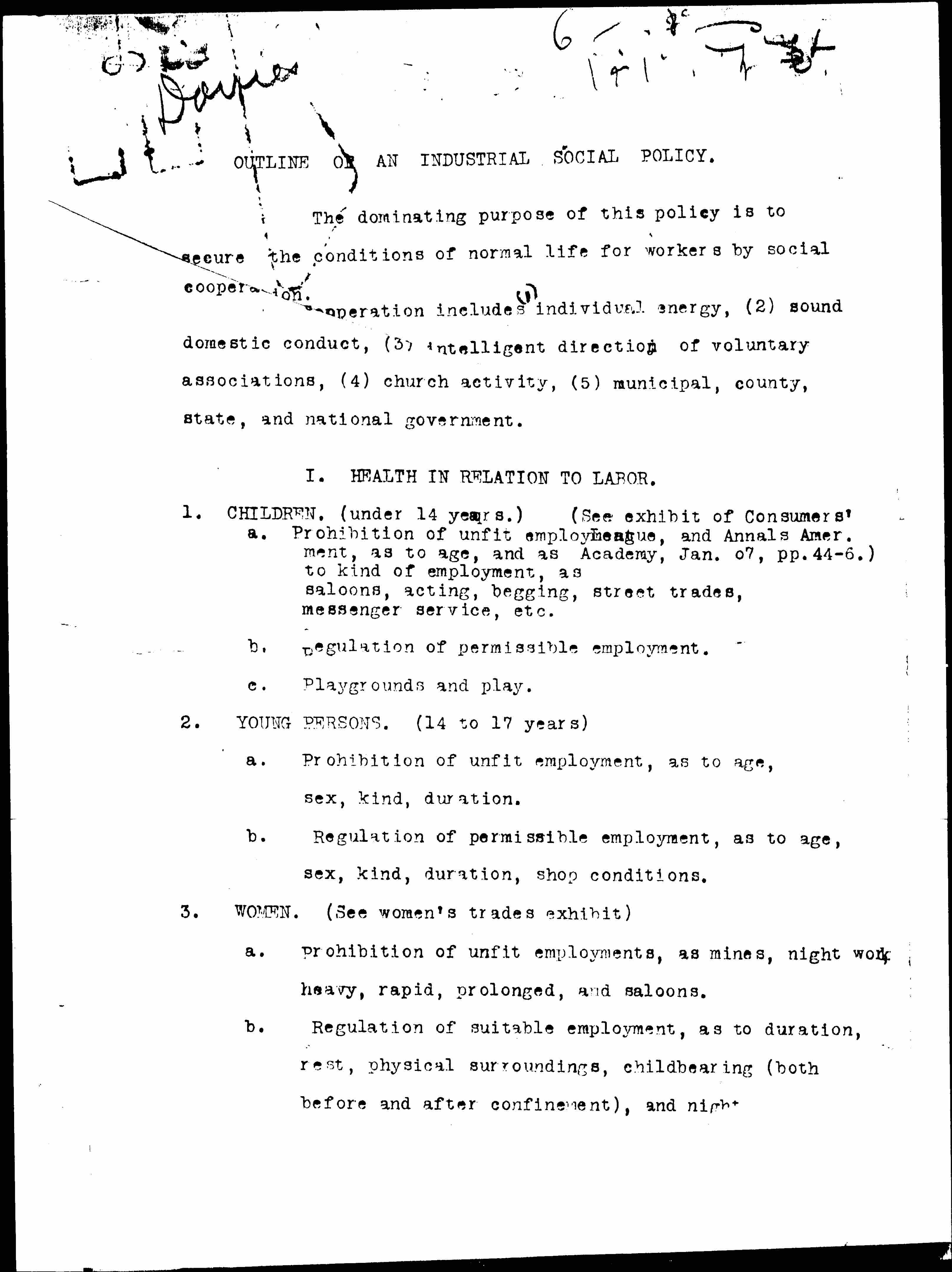 OUTLINE OF AN INDUSTRIAL SOCIAL POLICY.