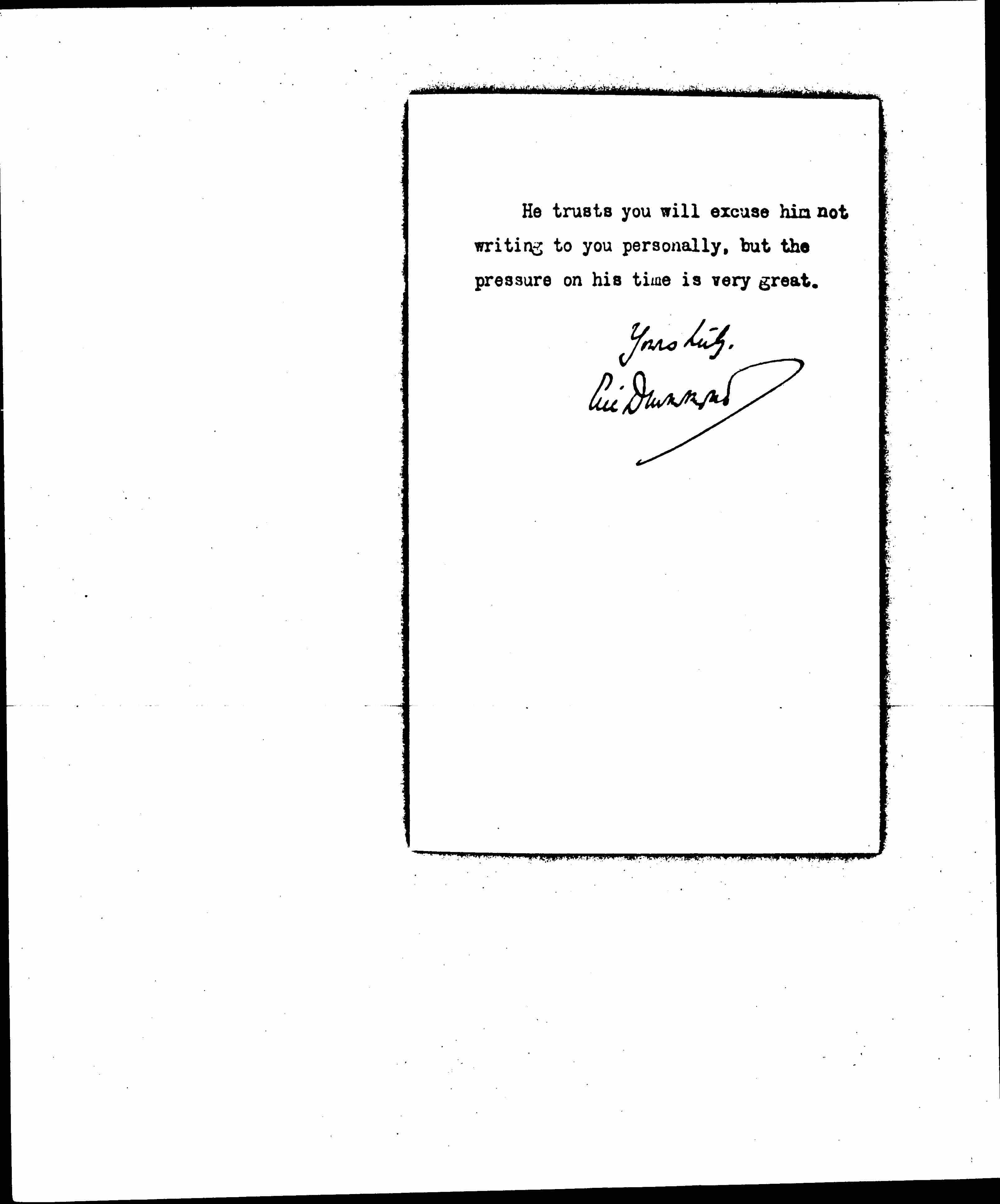 He trusts you will excuse him not writing to you personally, but the pressure on his time is very great.