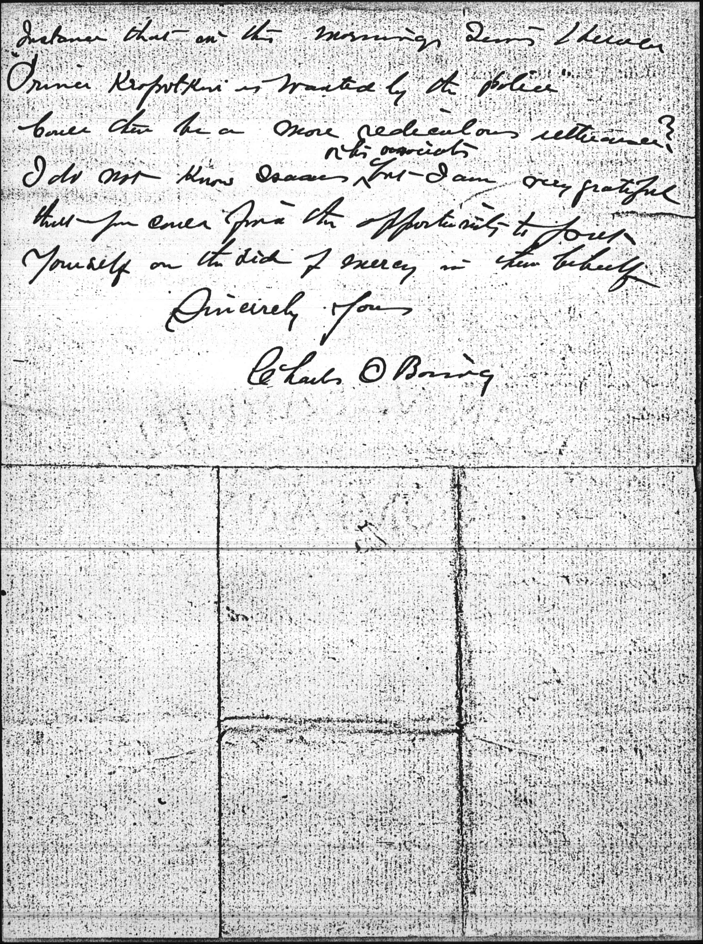 Instance that on this morning [Times?] I believe "Prince Kropotkin is wanted by the police."