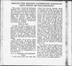 SHOULD THE CHICAGO ALDERMANIC ELECTIONS NEXT SPRING BE NON-PARTISAN?
