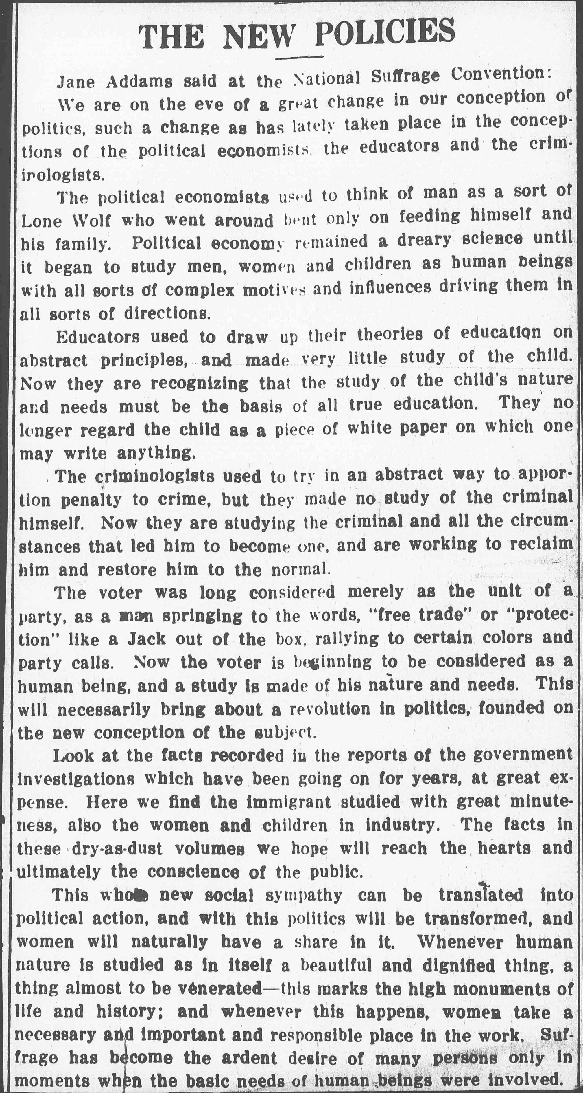 Jane Addams said at the National Suffrage Convention: