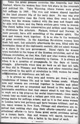 This whole new social sympathy can be translated into political action, and with this politics will be transformed, and women will naturally have a share in it. Whenever human nature is studied as in itself a beautiful and dignified thing, a thing almost to be venerated -- this marks the high monuments of life and history; and whenever this happens, women take a necessary and important and responsible place in the work. Suffrage has become the ardent desire of many persons only in moments when the basic needs of human beings were involved. [page 2]