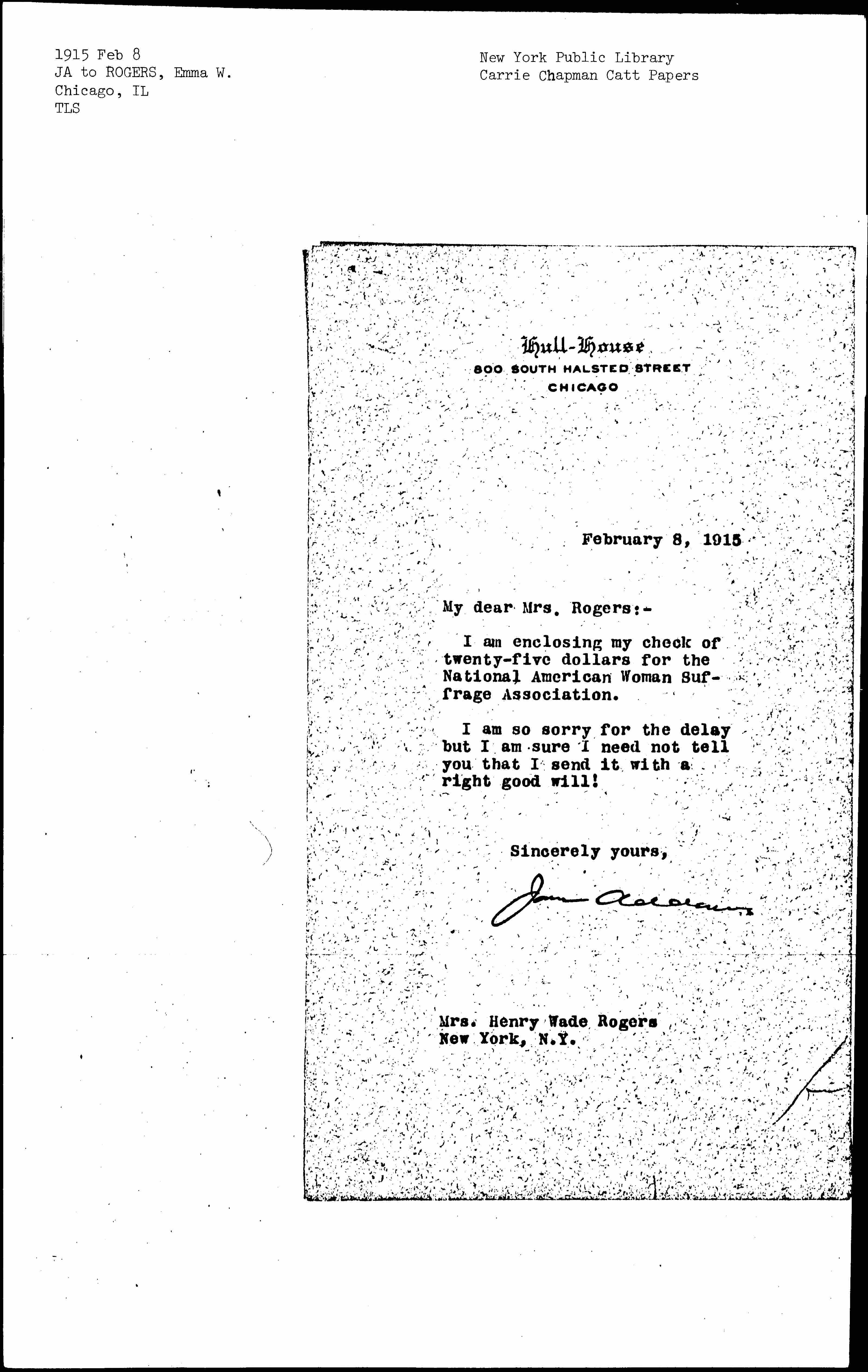 Jane Addams [signed]