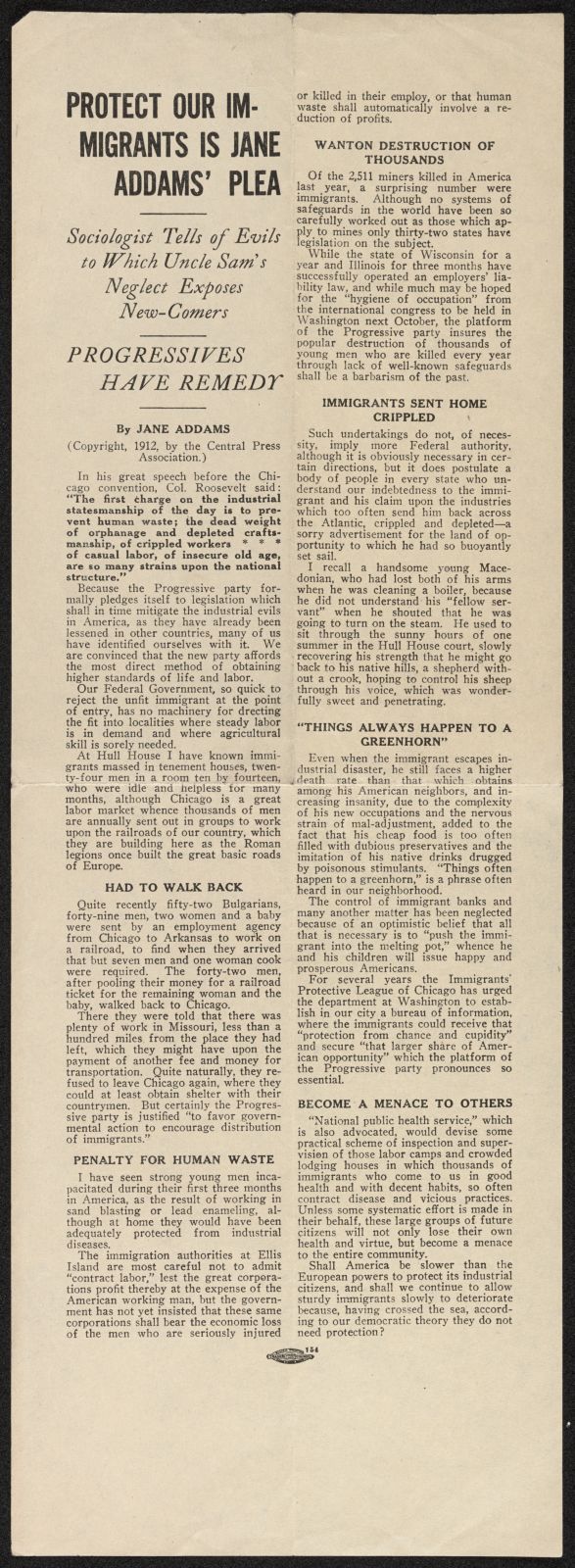 PROTECT OUR IMMIGRANTS IS JANE ADDAMS' PLEA