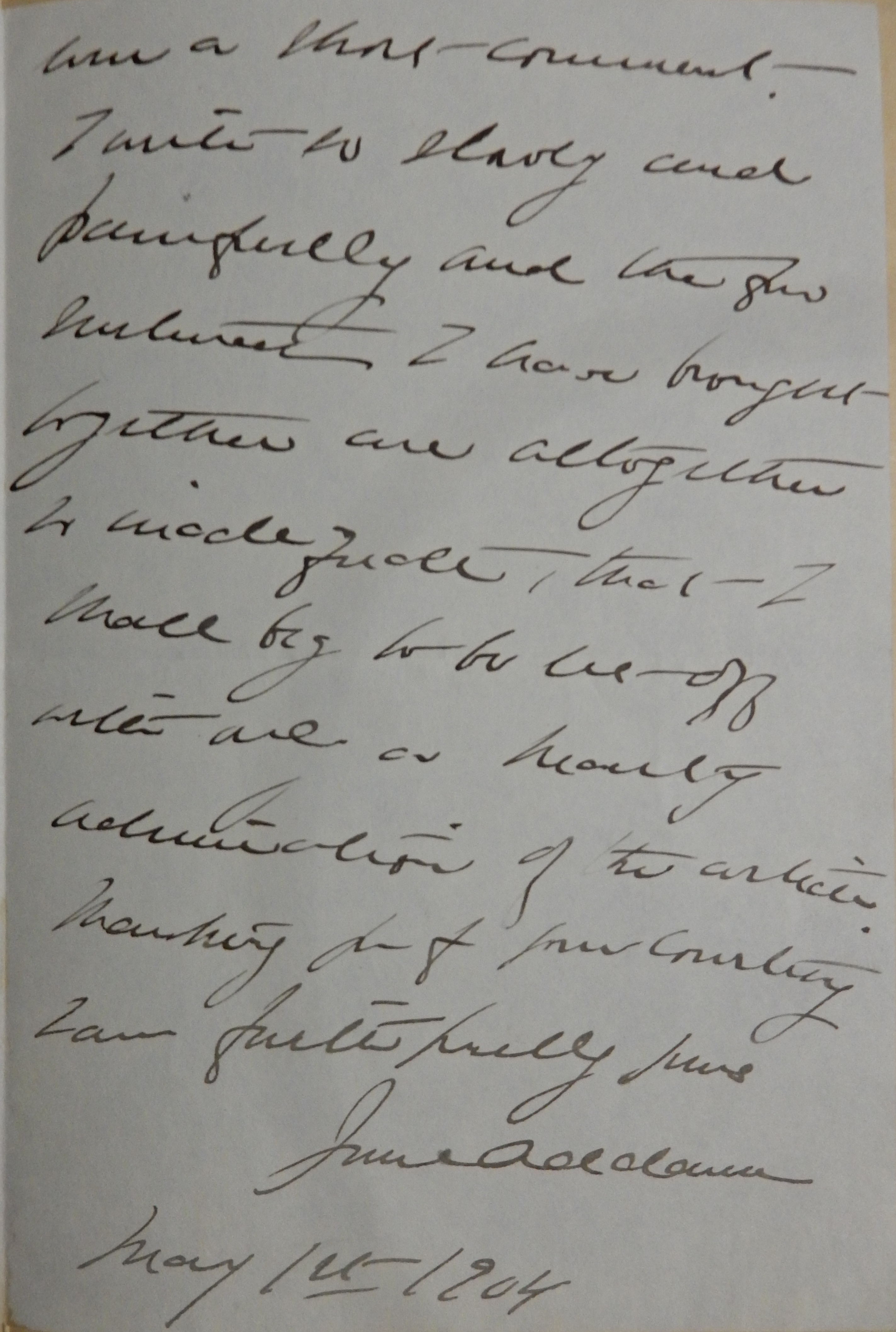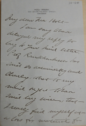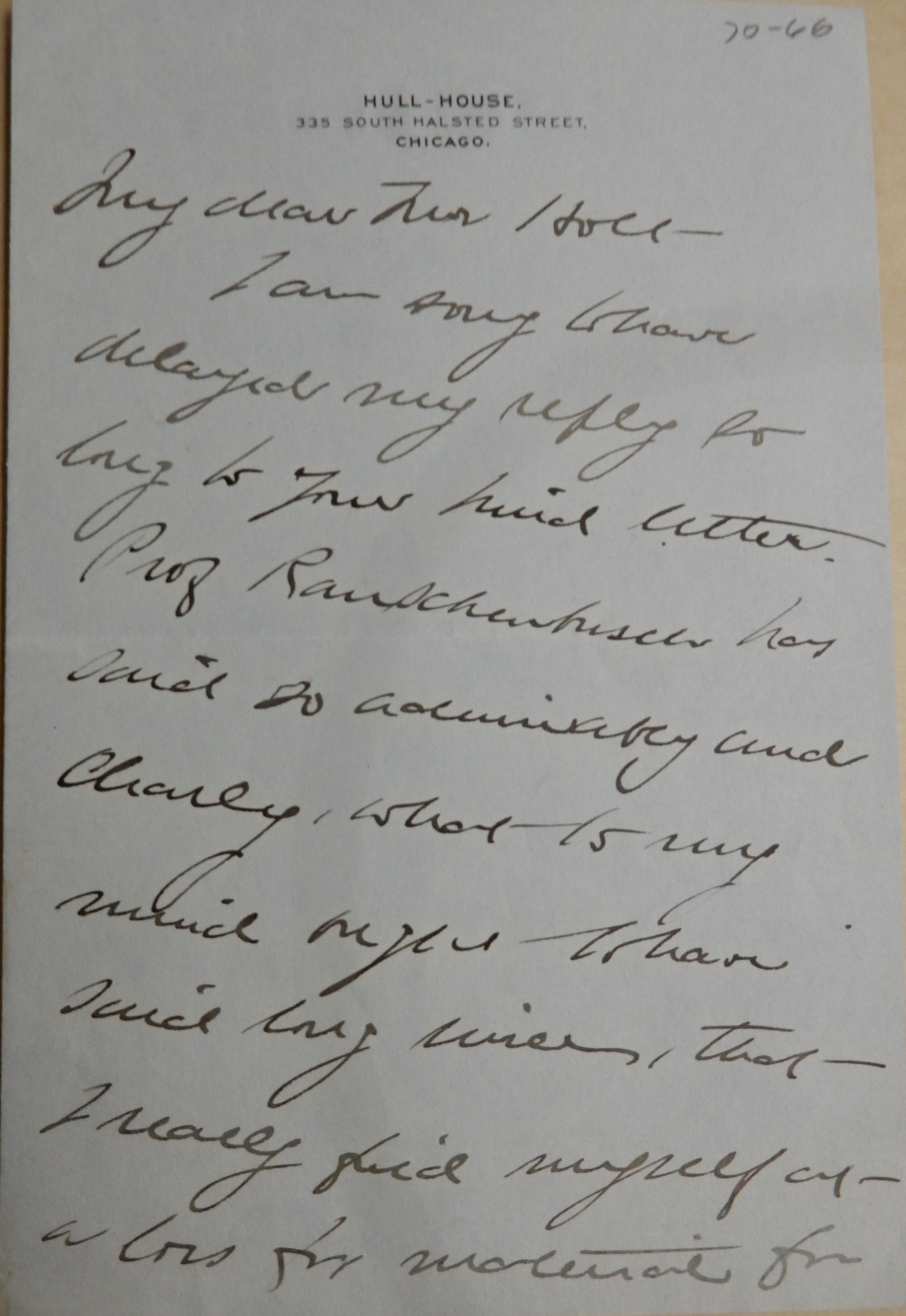 I am sorry to have delayed my reply so long to your kind letter. Prof Rauschenbusch has said so admirably and clearly, what to my mind ought to have said long since, that I really find myself at a loss for material for [page 2] even a short comment. I write so slowly and painfully and the few sentences I have brought together are altogether so inadequate, that I shall beg to be let off with only a hearty admiration of the article. Thanking you for your courtesy I am faithfully yours