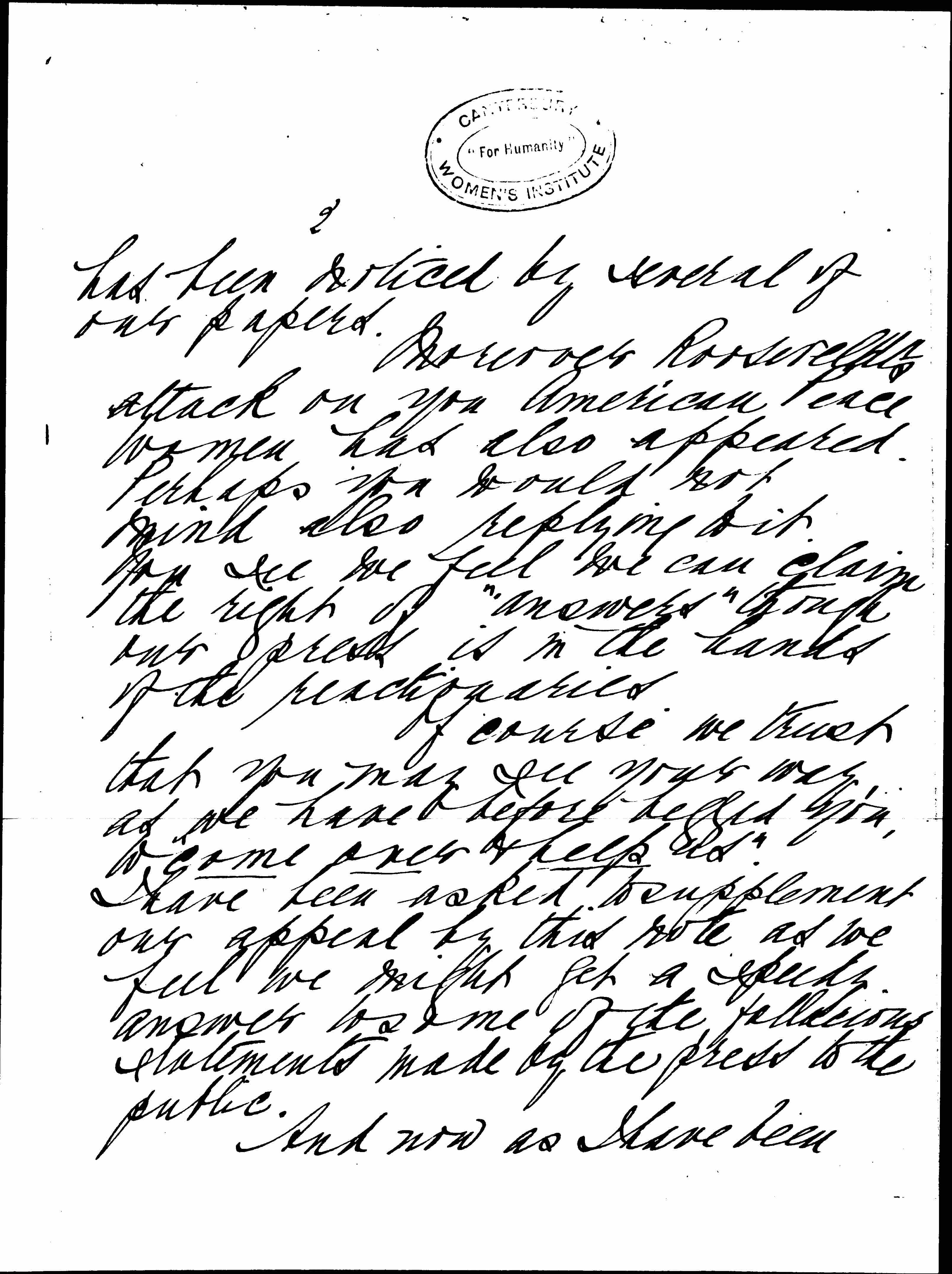Moreover [Roosevelt's] attack on you American Peace Women has also appeared. Perhaps you would not mind also replying to it. You see we feel we can claim the right of "answers" though our press is in the hands of the reactionaries.
