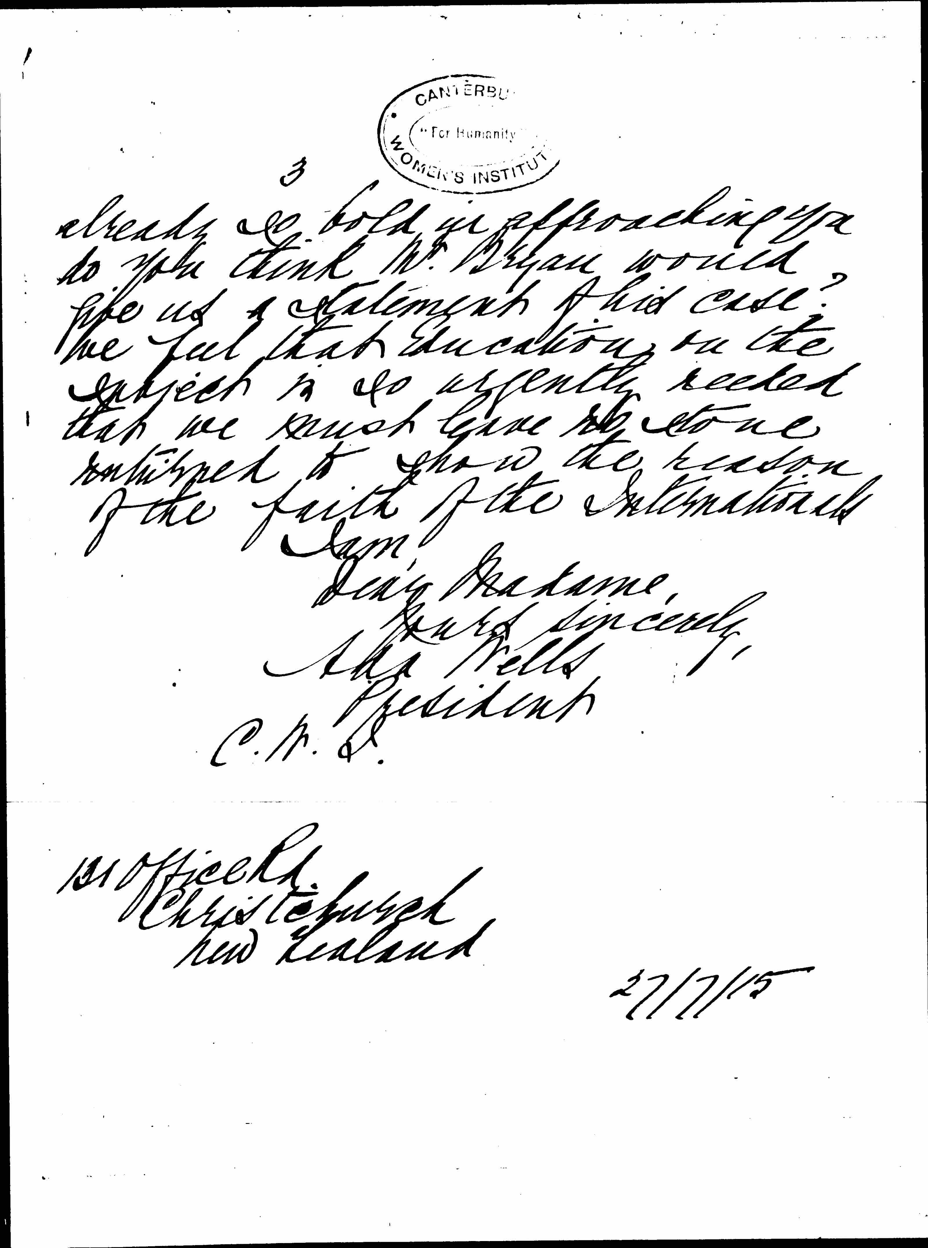 And now as I have been [page 3] already so bold in approaching you do you think Mr Bryan would give us a statement of his case? We feel that Education on the subject is so urgently needed that we must leave no stone unturned to show the reason of the faith of the Internationals.