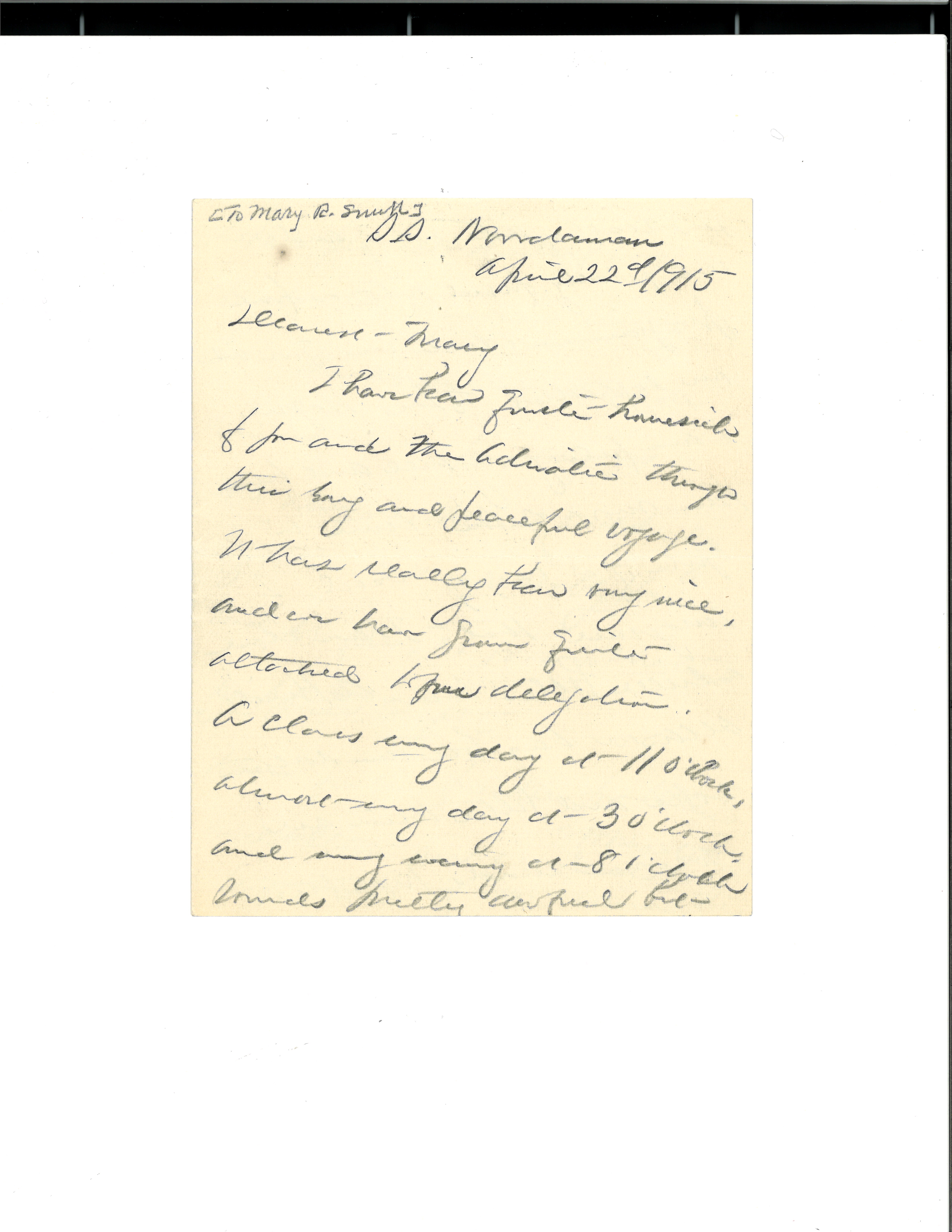 I have been quite homesick for you and the Adriatic through this big and peaceful voyage. It has really been very nice, and we have grown quite attached to our delegation.