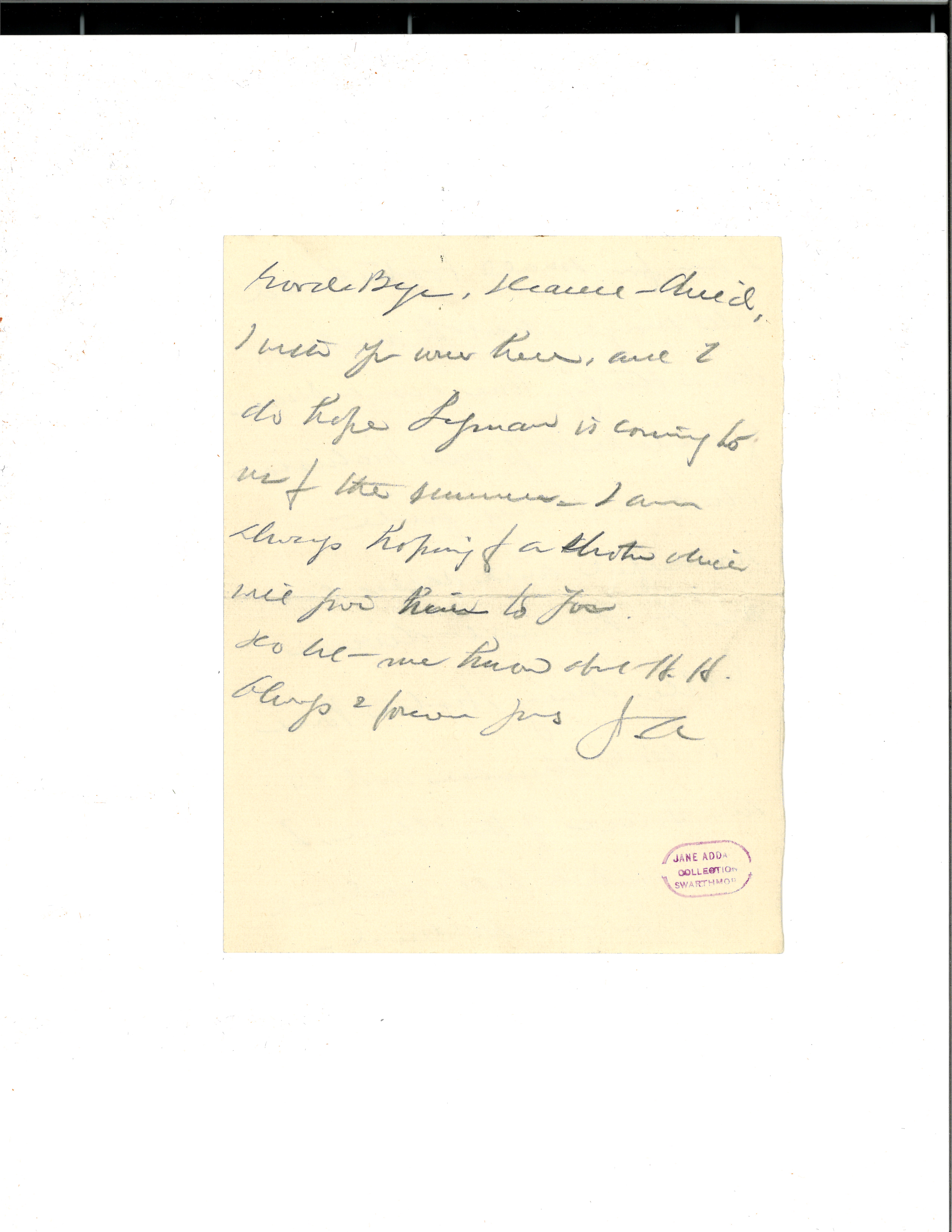 Good Bye, Dearest child, I wish you were here, and I do hope Lyman is coming to us for the summer. I am always hoping for a [stroke] which will give him to you.