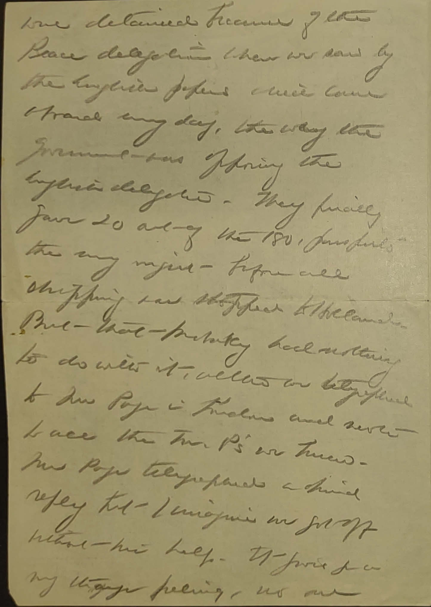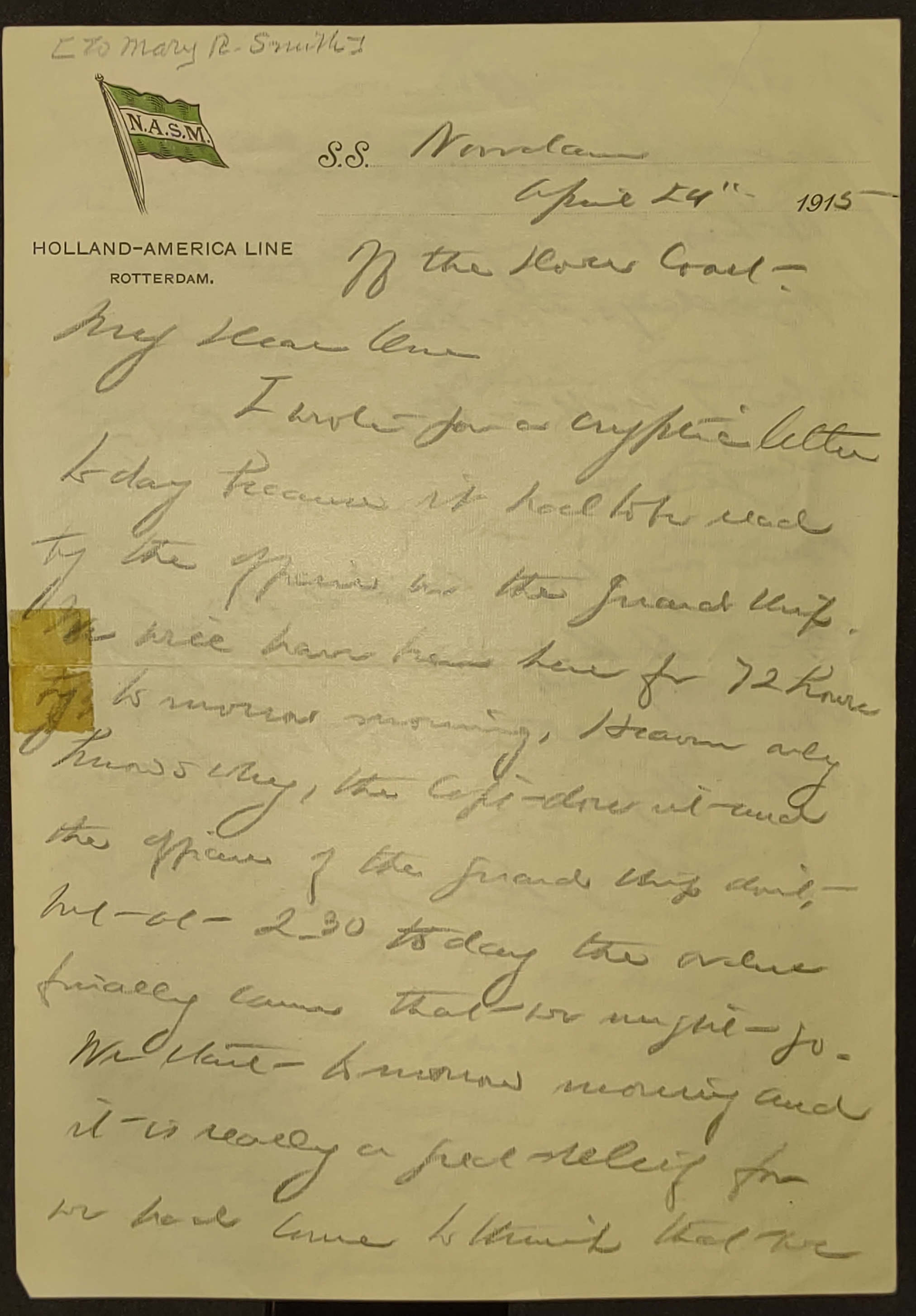 I wrote you a cryptic letter today because it had to be read by the officer on the guard ship. We will have been here for 72 hours by tomorrow morning. Heaven only knows why, the Capt doesn't and the officers of the guard ship don't, but at 2.30 today the orders finally came that we might go. We start tomorrow morning and it is really a great relief for we had come to think that we [page 2] were detained because of the Peace delegation when we saw by the English papers which come aboard every day, the way the government was opposing the English delegates. They finally gave 20 out of the 180, passports the very night before all shipping was stopped to Holland. But that probably had nothing to do with it, [although] we telegraphed to Mr Page in London and wrote to all the M.P's we knew. Mr Page telegraphed a kind reply but I imagine we got off without his help. It gives you a very strange feeling, no one [page 3] gives you any explanation of anything calling it merely a new order.