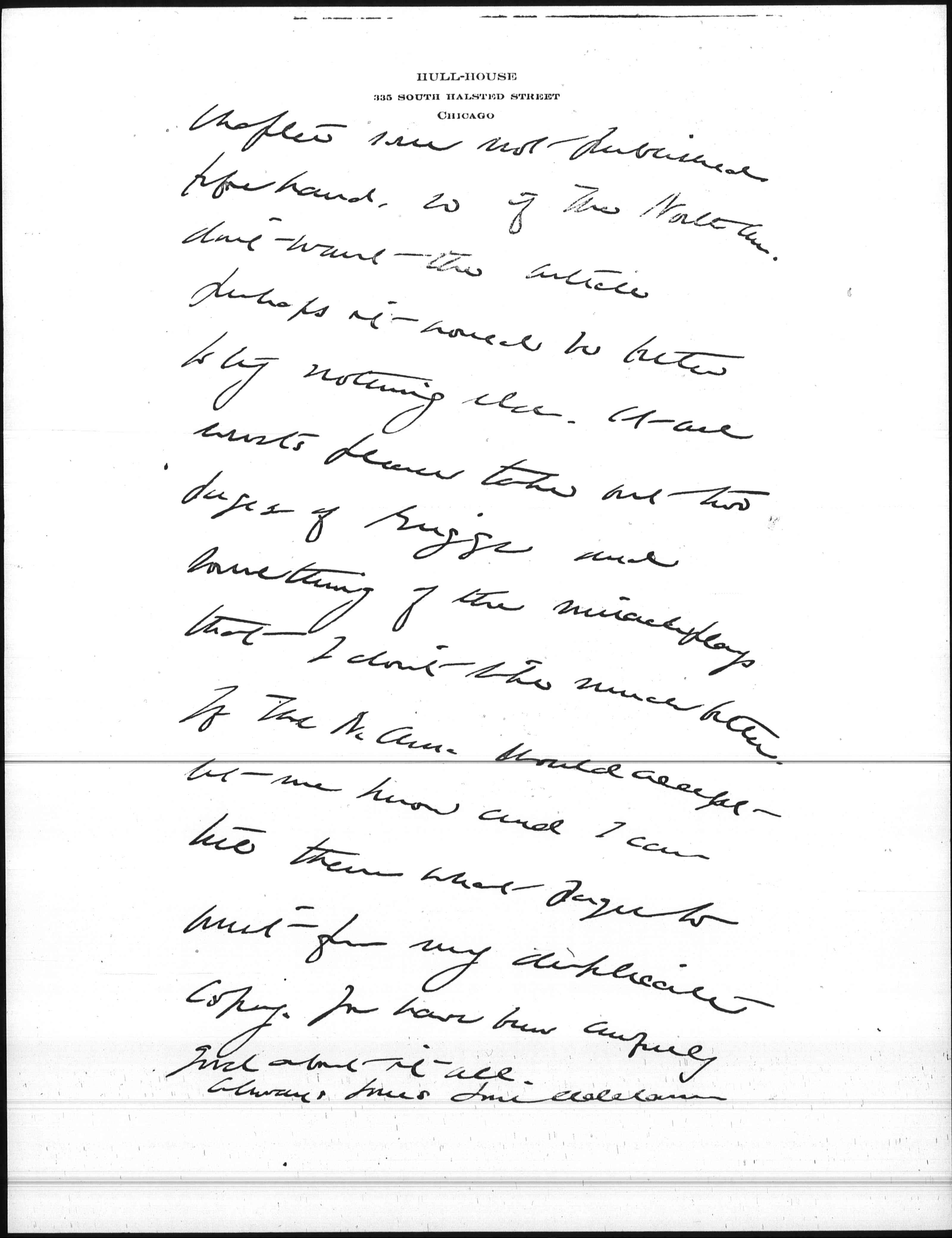 Prof Ely has been here for three weeks and talked to me daily about the book would rather the Education [page 2] chapter was not published beforehand, so if the North Am. don't want the article perhaps it would be better to try nothing else. At all events please take out two pages of Griggs and something of the miracle plays that I don't like much better. If the N. Am. should accept let me know and I can tell them what pages to omit from my duplicate copy. You have been awfully good about it all.