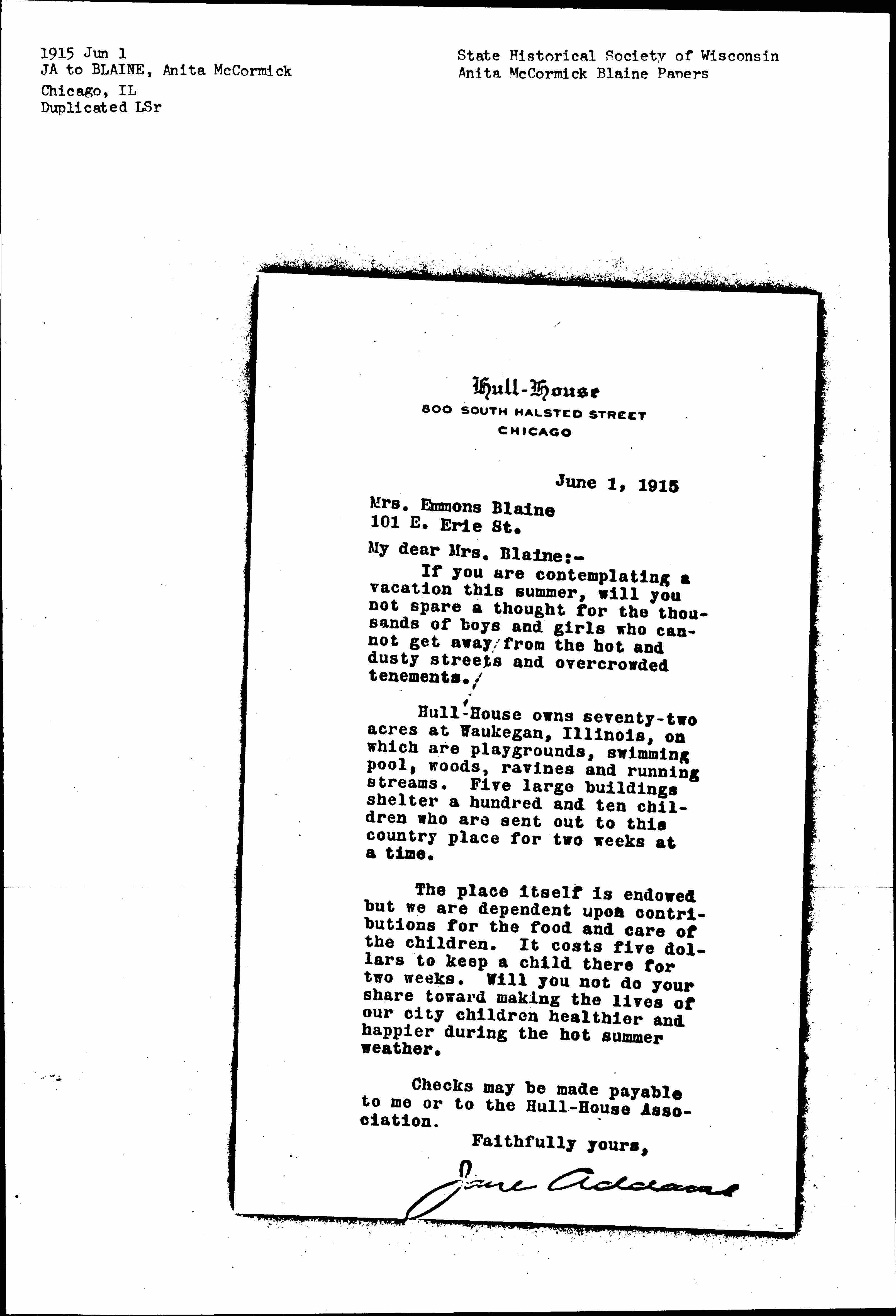 Jane Addams [signed]