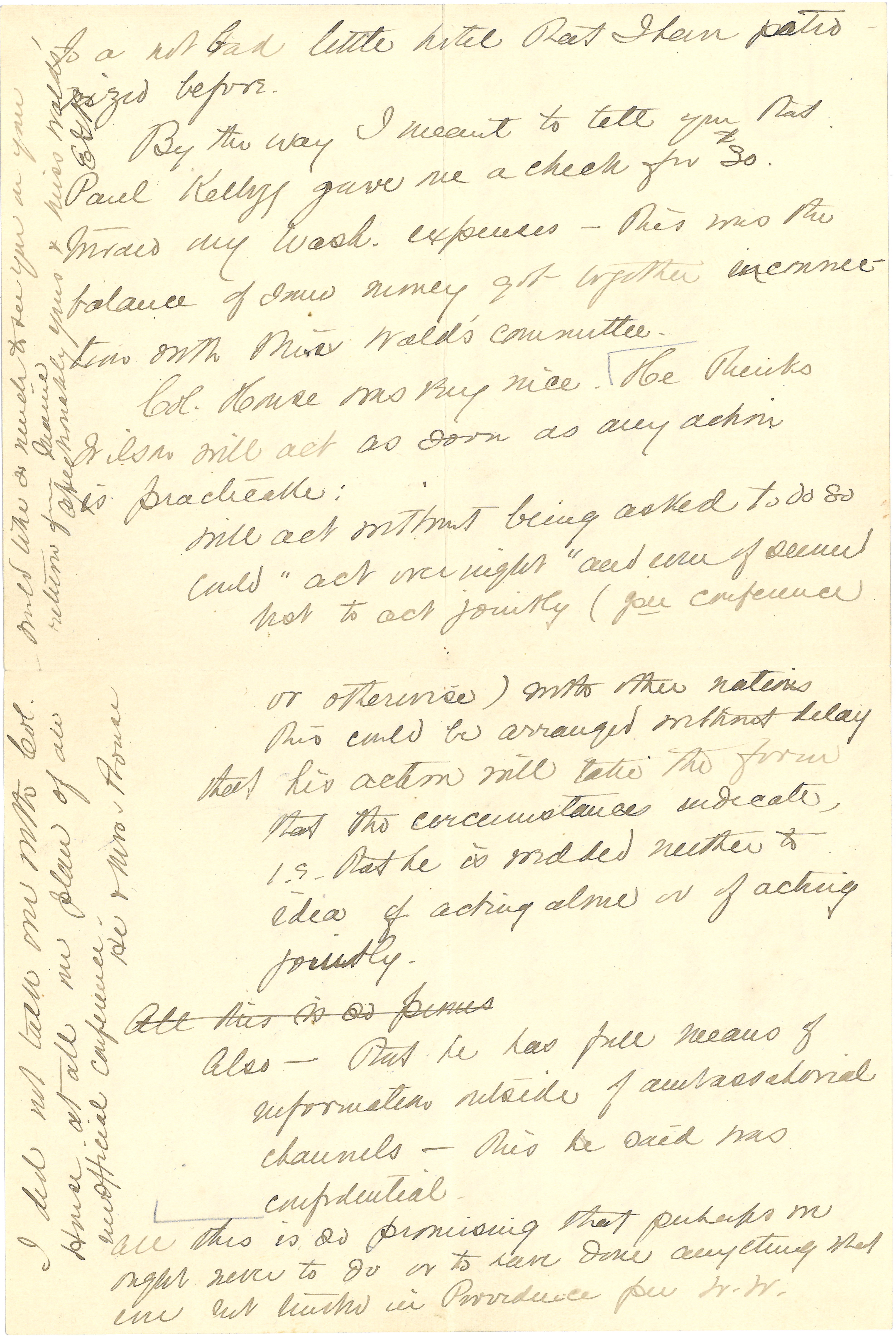 By the way I meant to tell you that Paul Kellogg gave me a check for $30 toward my Wash. expenses -- this was the balance of some money got together in connection with Miss Wald's committee.