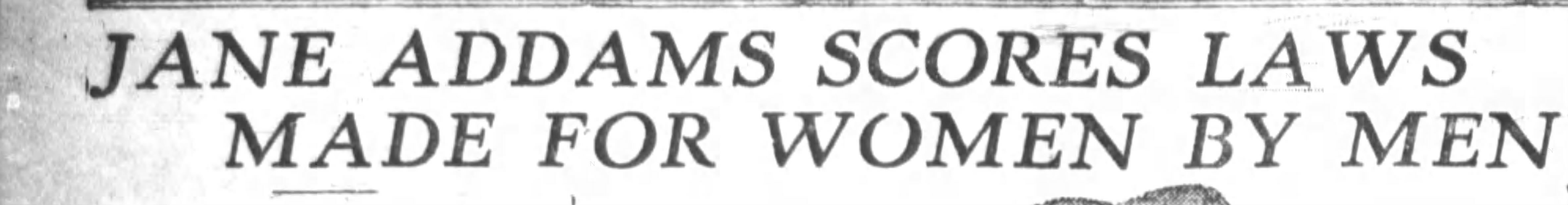 Urging the need for universal woman suffrage, Miss Addams declared that women should have the franchise, not only to bring about intelligent humanitarian legislation, but in order to be in a position to follow it into intelligent enforcement.