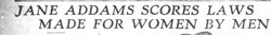 "She has discovered that the unrepresented are always liable to be given what they do not need by legislators, who merely wish to placate them. A child labor law exempts street trades, the most dangerous of all trades to the child's morals; a law releasing mothers from petty industry that they may rear worthy children provides so inadequate a pension that overburdened women continue to face the necessity of neglecting their young in order to feed them."