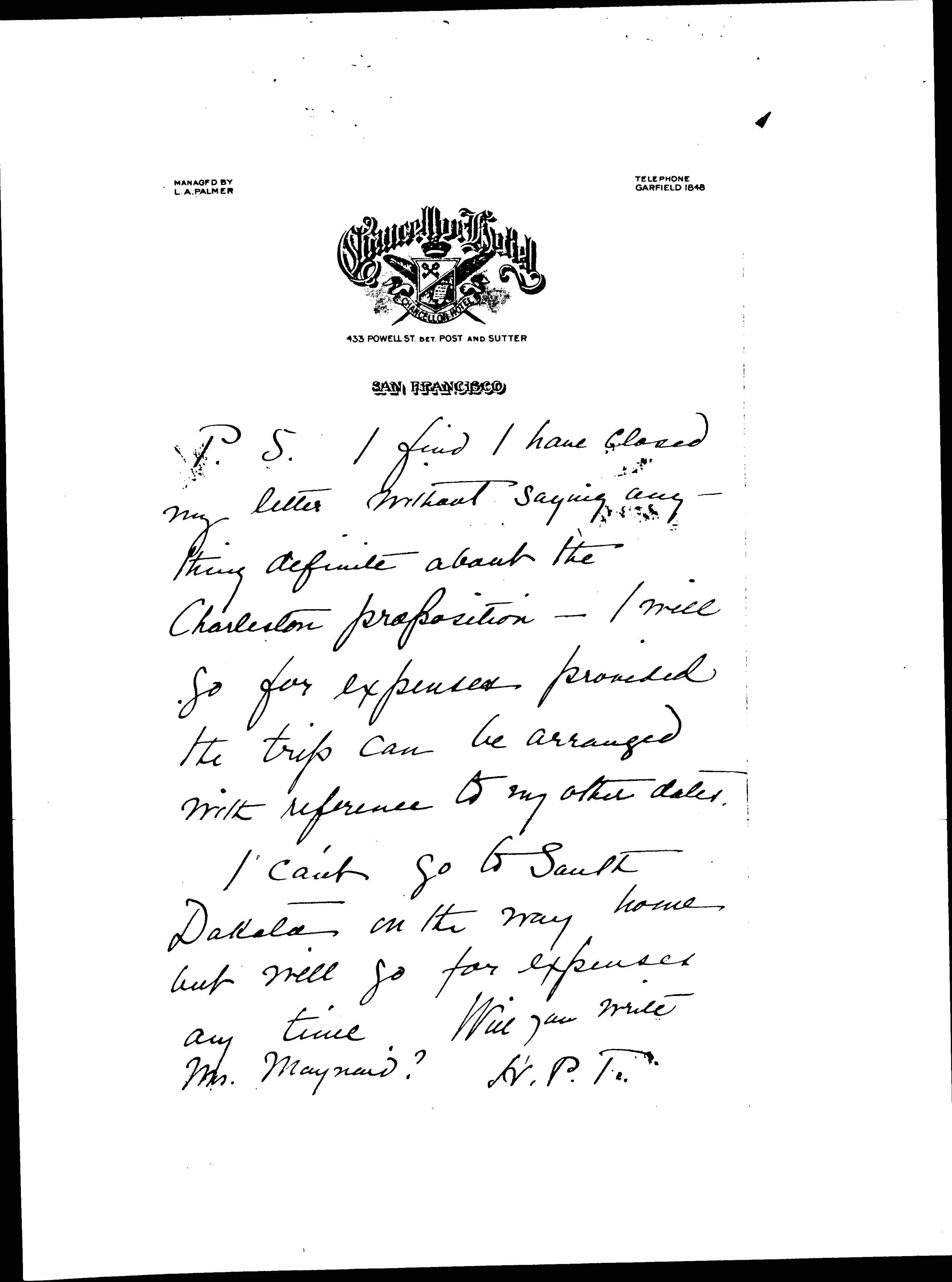 The St. Louis people have wanted her since last spring, and I don't think I could at all fill the bill there or in Lynn, Massachusetts.