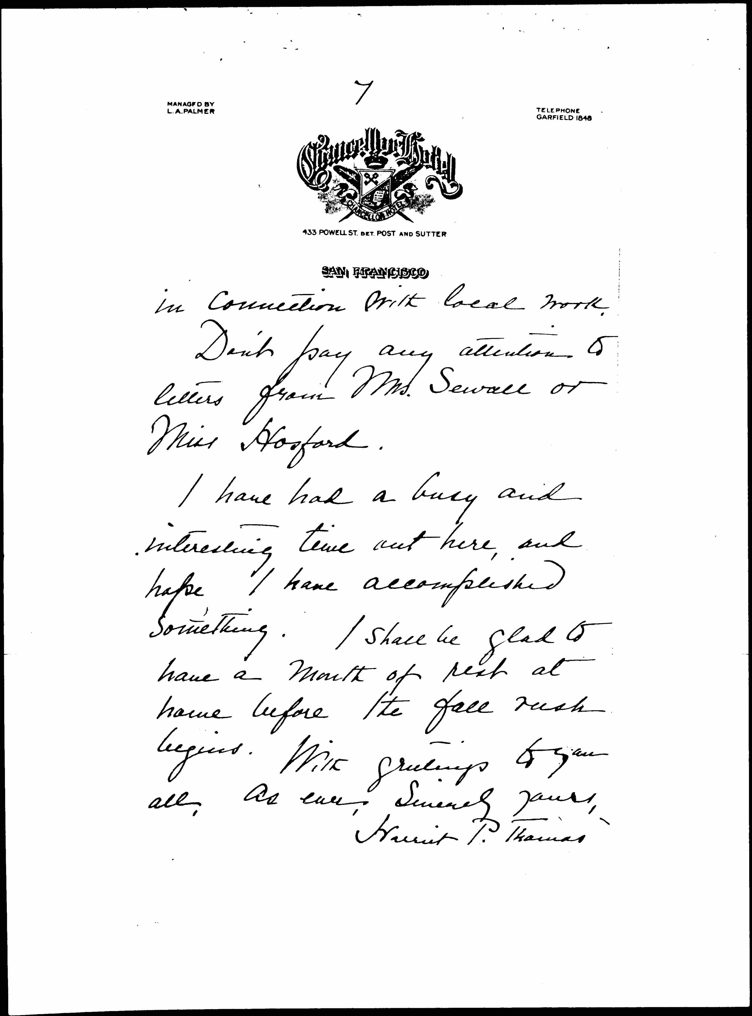 Don't pay any attention to letters from Mrs. Sewall or Miss Hosford.