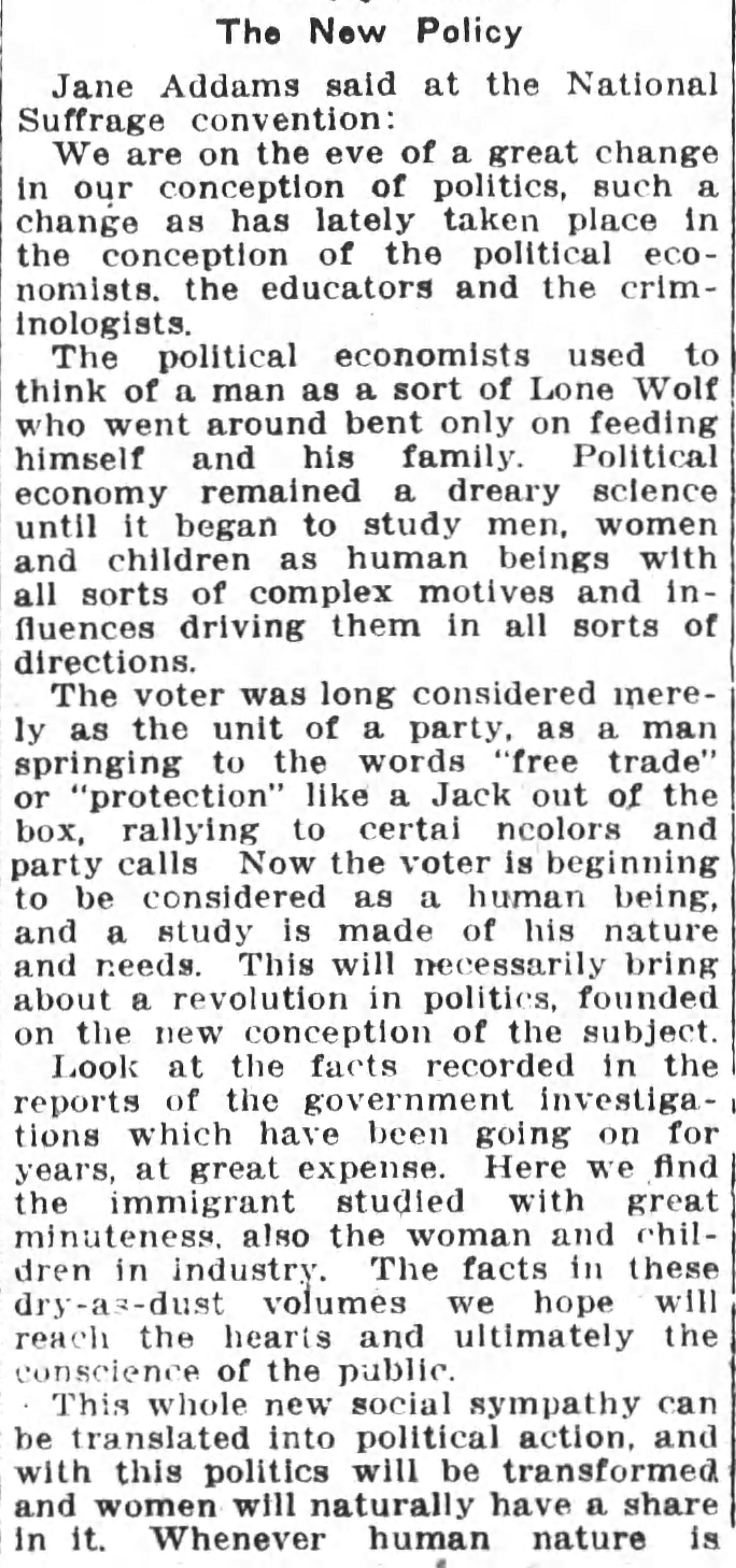Jane Addams said at the National Suffrage convention: