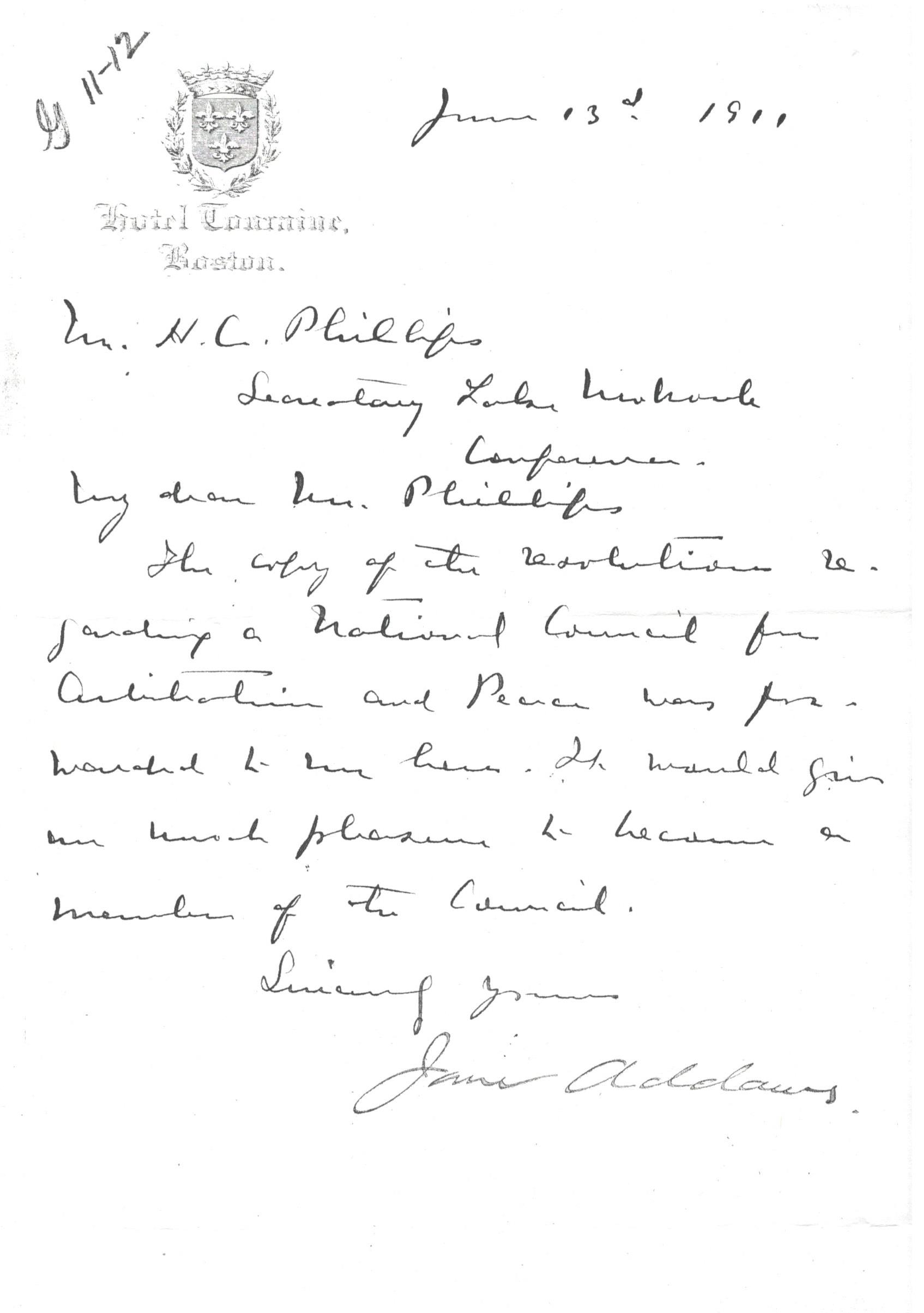 The copy of the resolution regarding a National Council for Arbitration and Peace was forwarded to me here. It would give me much pleasure to become a member of the Council.