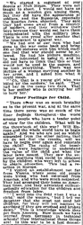 "In Germany a member of the Reichstag indicted his country because of the high mortality among children. He said that if necessary the tenements must be torn down, the milk supply improved, the sanitary conditions changed to preserve the health of the children. In England they are working for the improvement of the child, and juvenile labor exchanges have been formed. In criminology great changes have been made. A man is not tried according to set rules, but the Judges and jury try to learn the cause of his crime. They endeavor to get hold of the criminal earlier and earlier. They say if he had been properly examined in the schools as to his mental and physical condition his career of crime might have been averted."