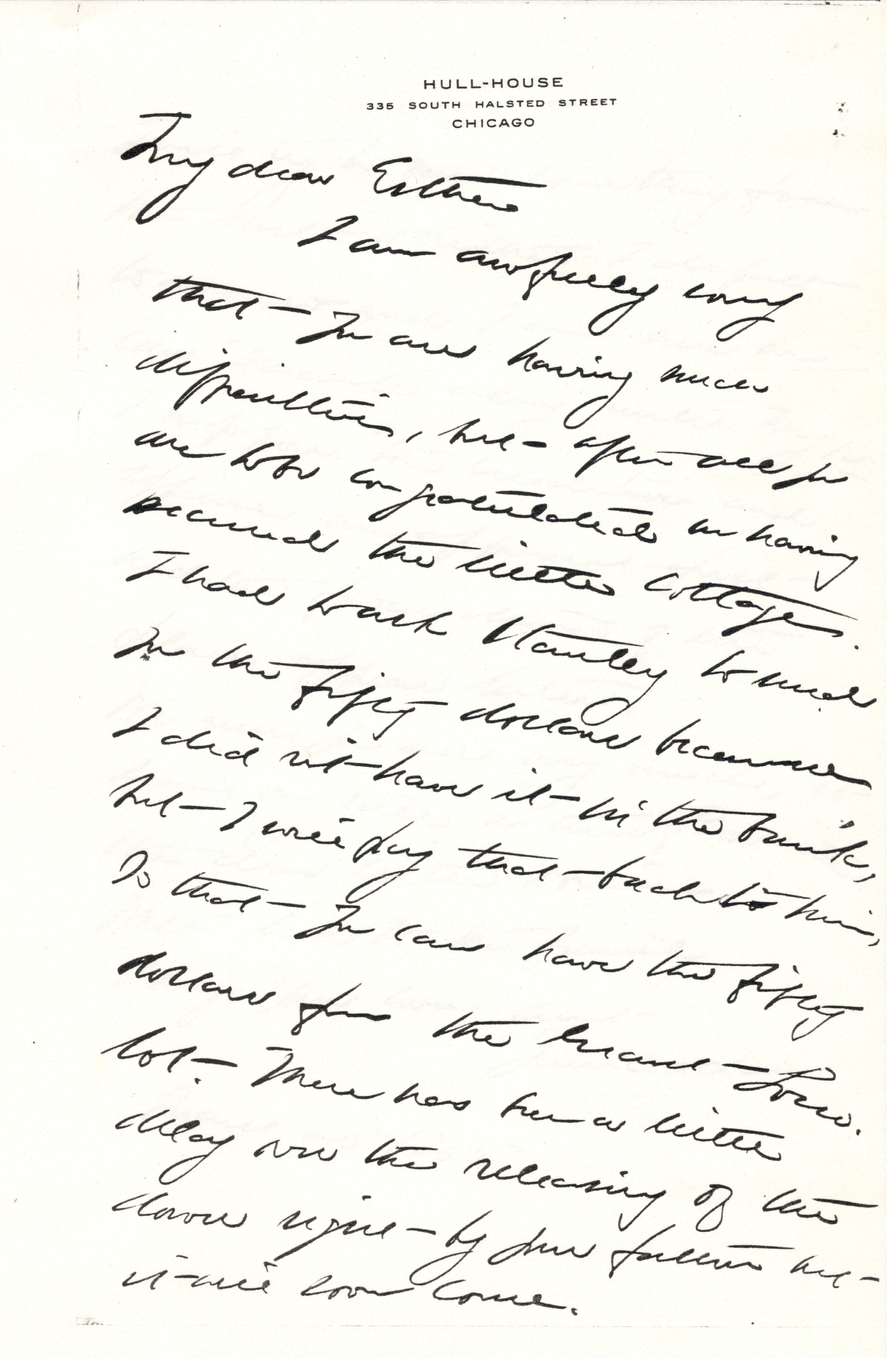 I am awfully sorry that you are having such difficulties, but after all you are to be congratualted on having secured the little cottage. I have to ask Stanley to send you the fifty dollars because I didn't have it in the bank, but I will pay that back to him, so that you can have the fifty dollars for the Grant Loco. lot. There has been a little delay over the releasing of the dower right by your father but it will soon come. [page 2] I will try to send something from the east whither I depart tomorrow and I am sure we can [scramble] along until May 1st. I suppose the condition and expense are apparent first and the fascination of the place appears later.
