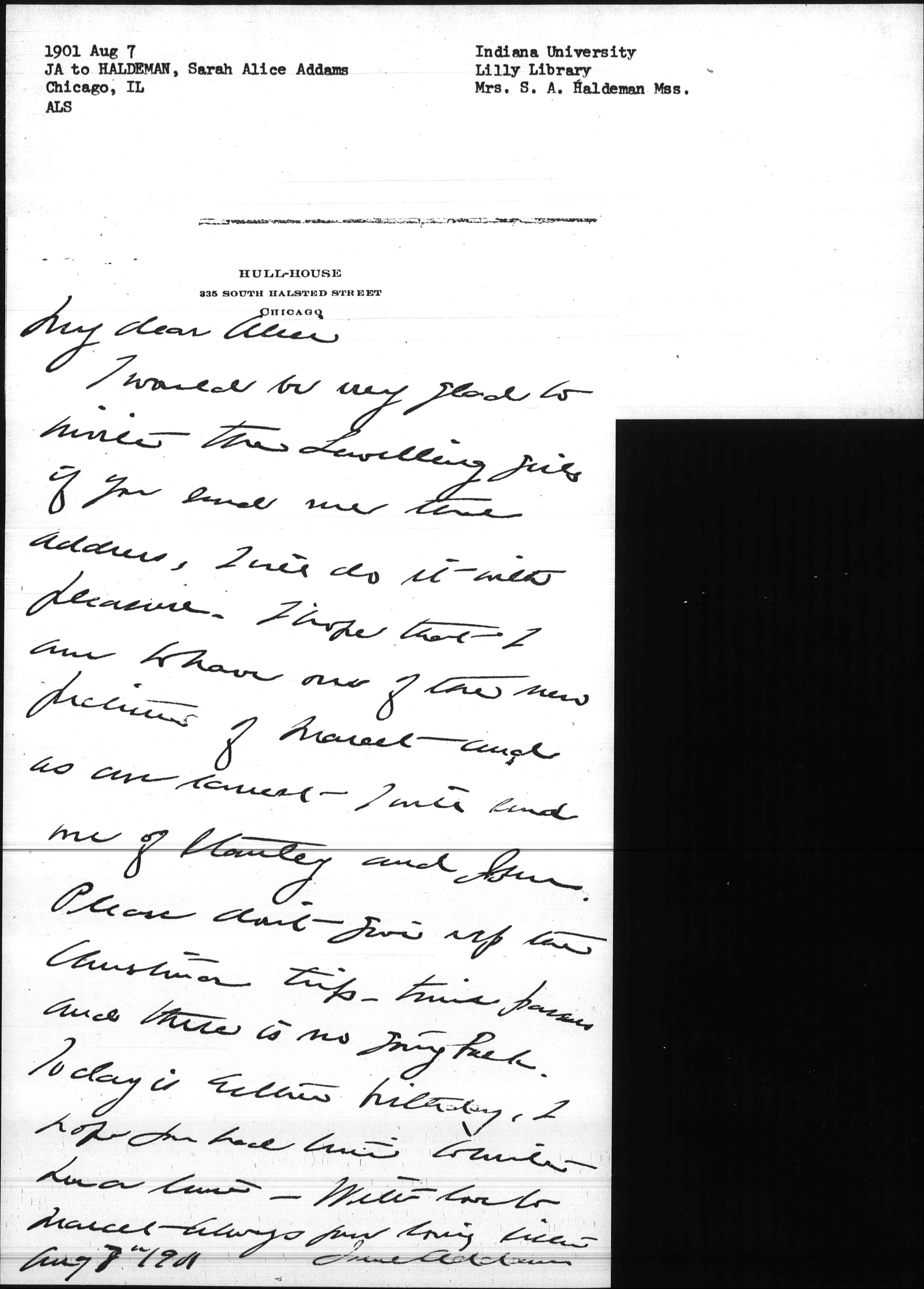 I would be very glad to write the Lewelling girls if you send me the address, I will do it with pleasure. I hope that I am to have one of the new pictures of Marcet and as an [earnest?] I will send one of Stanley and John.